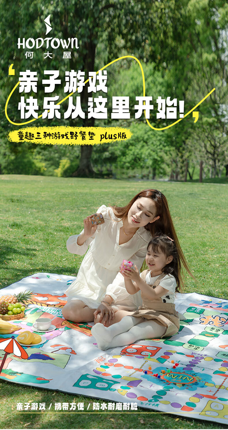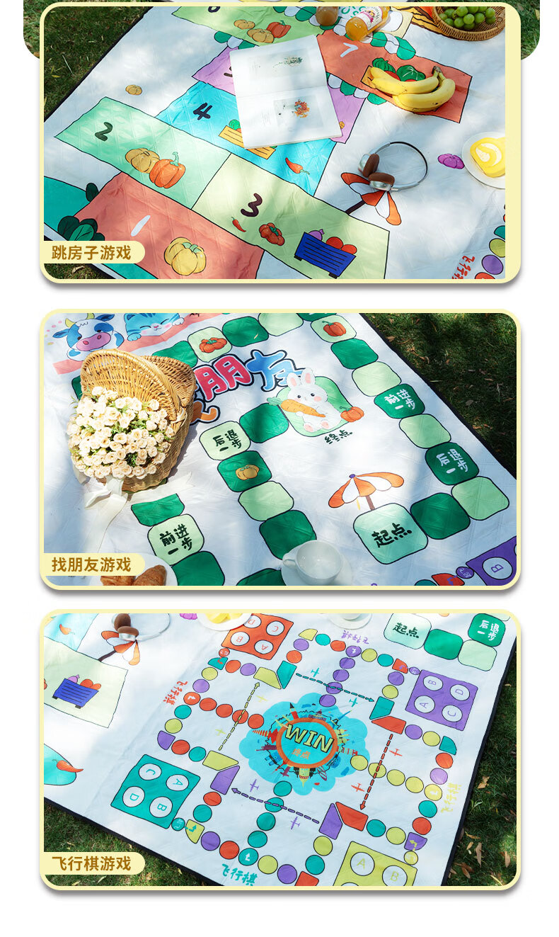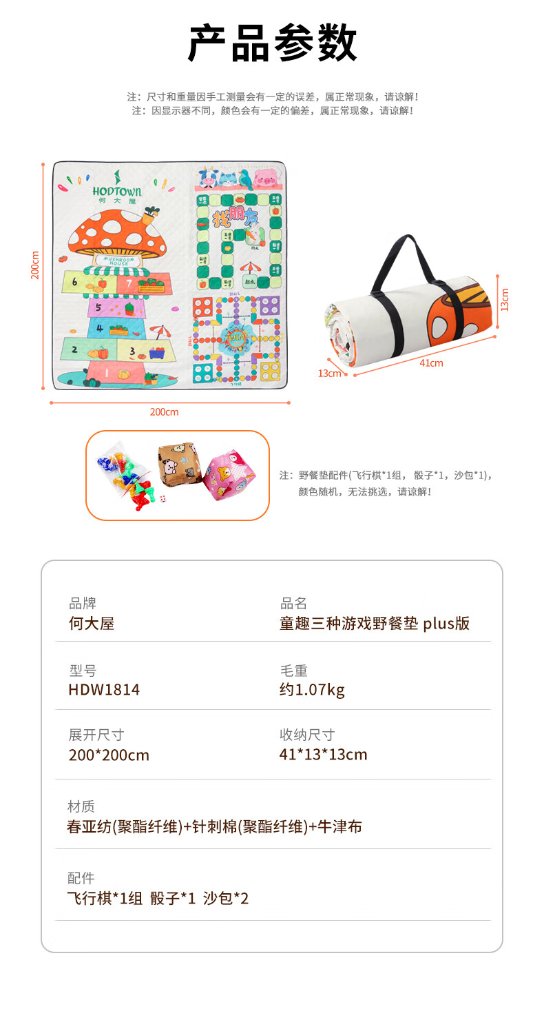 何大屋(Hodtown)户外野餐垫飞行棋地毯游戏棋超大号爬行地毯亲子互动游戏垫儿童 童趣三种游戏野餐垫HDW1814 200*200