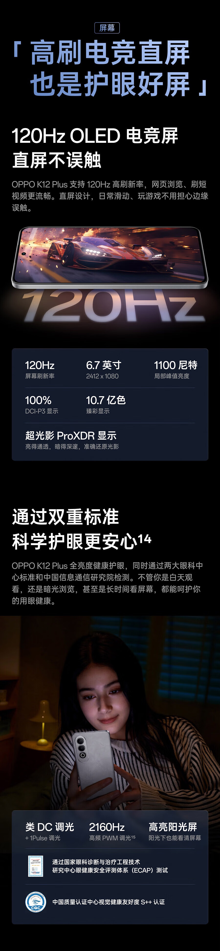 OPPOK12 Plus 12GB+256GB 雪峰白 6400mAh大电池 第三代骁龙7芯片 120Hz护眼直屏5G AI手机 k12s-星芒白 8GB+256GB