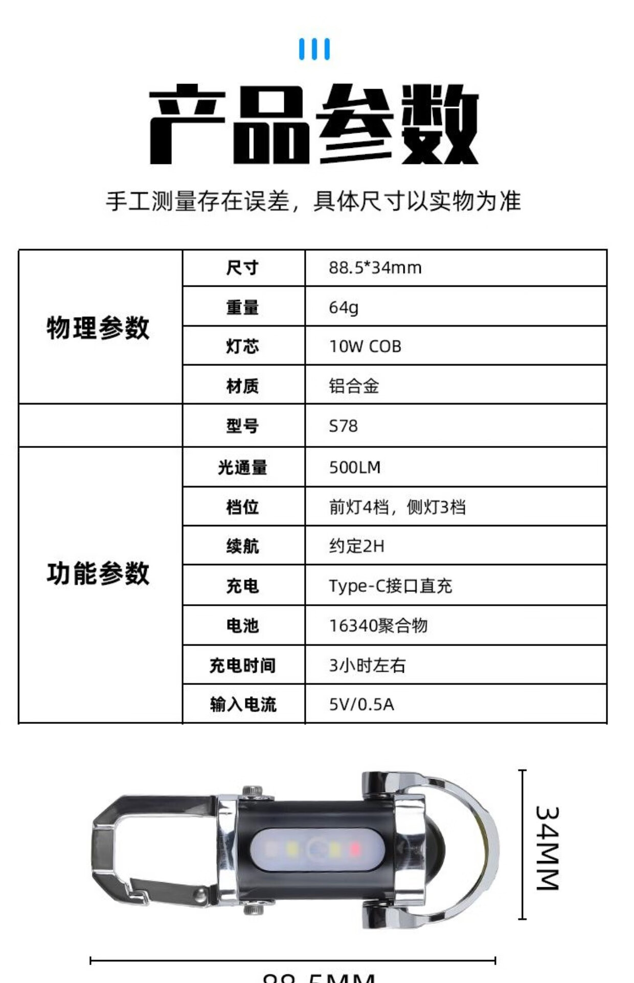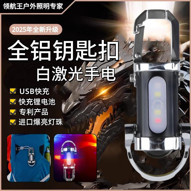 【德式精工】2025新款便携钥匙扣手电充电宝 户外多功能强光手电 送数据线+内置大锂电池+充电宝