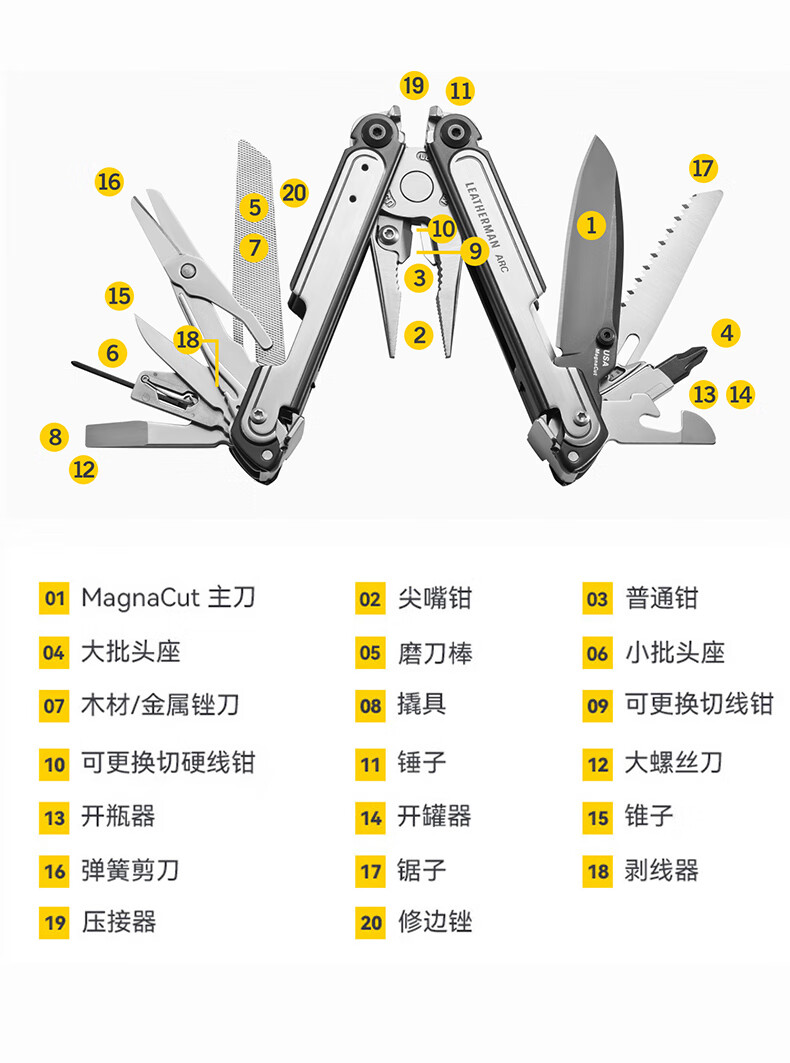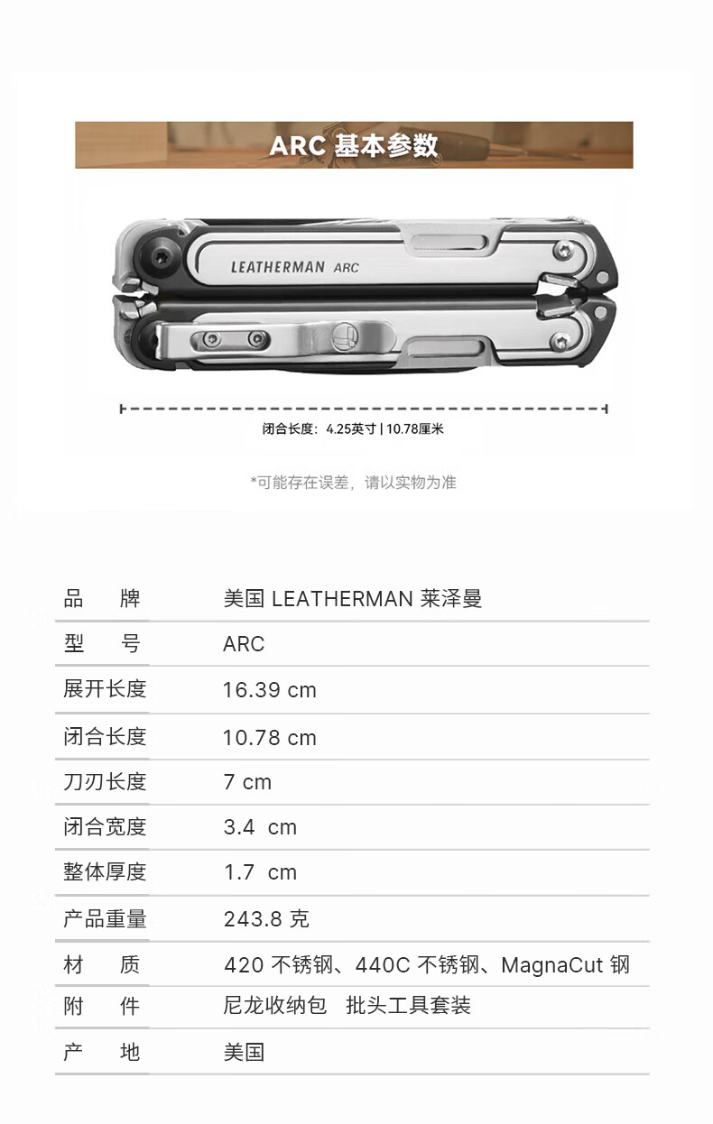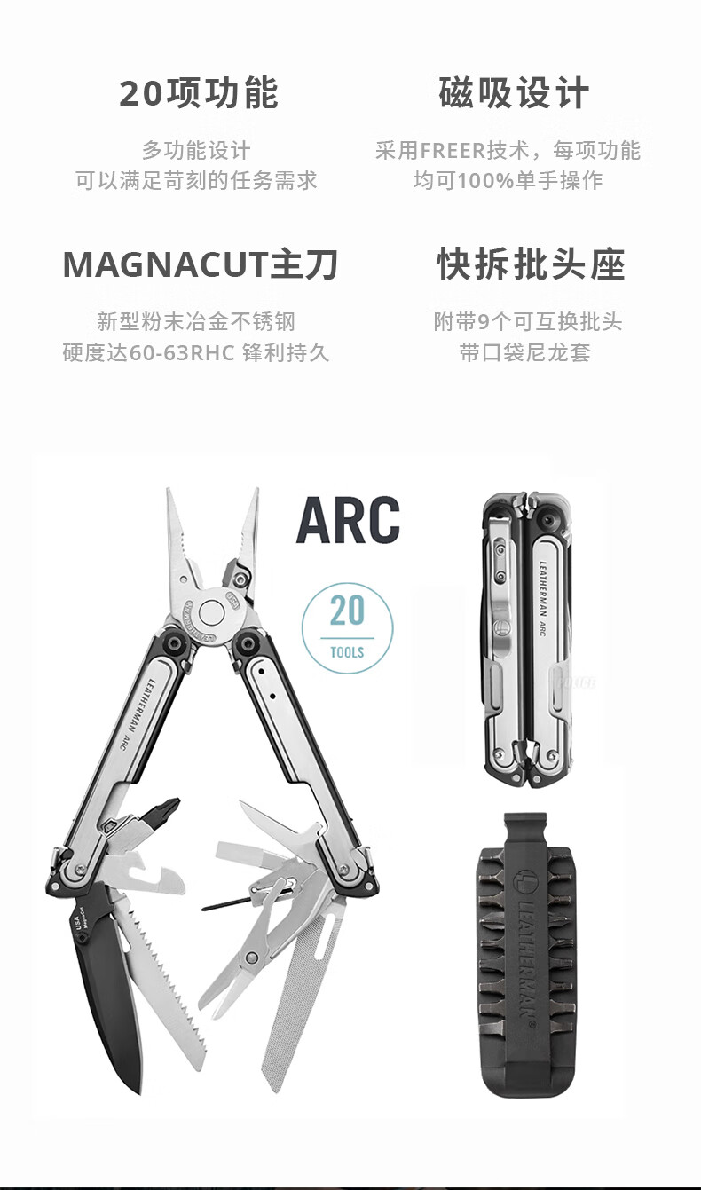 莱特曼美国进口Leatherman莱特曼ARC磁吸户外多功能便携折叠组合工具钳 ARC833076
