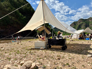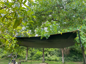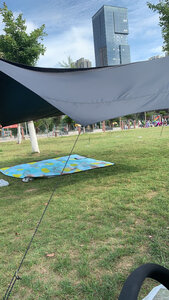 这款黑胶天幕,颜值很高,去露营的时候不容易和别人撞同款。也有几家陆续来问在哪买的多少钱之类的。使用的时候,的确跟斜阳,天幕下挺凉快的,黑胶天幕什么样的算好也没有过多研究。第一买的黑胶有漏白,换了一次好点了,还是有几个细小的点,因为着急用就没再换。