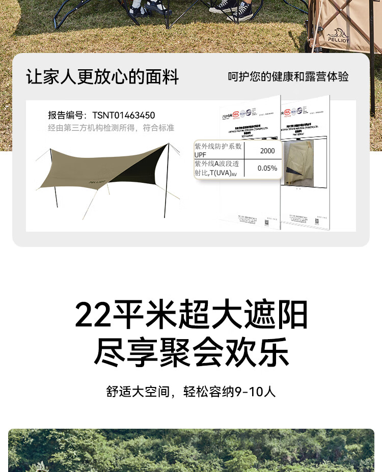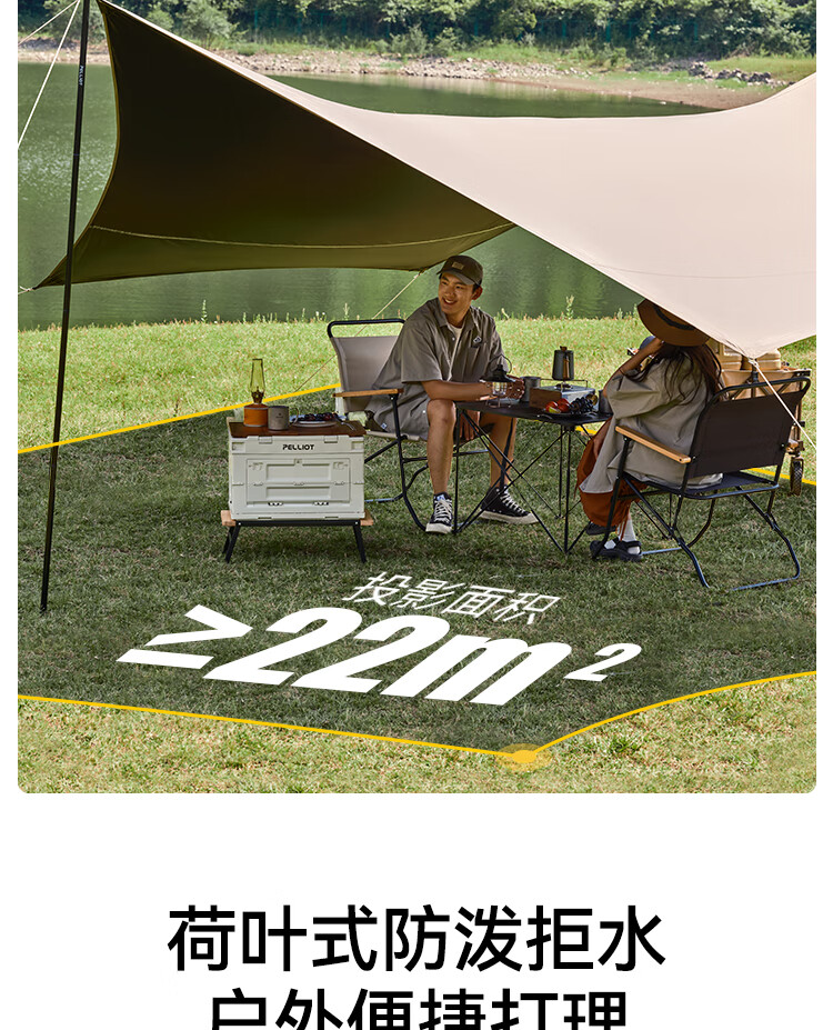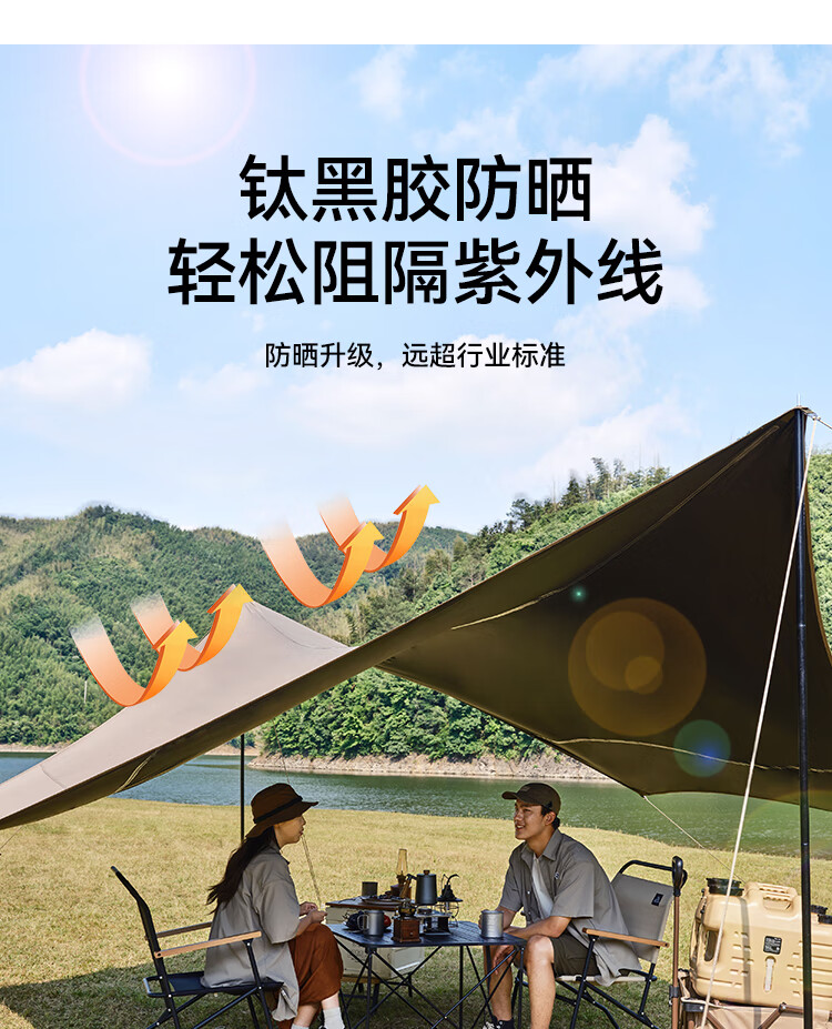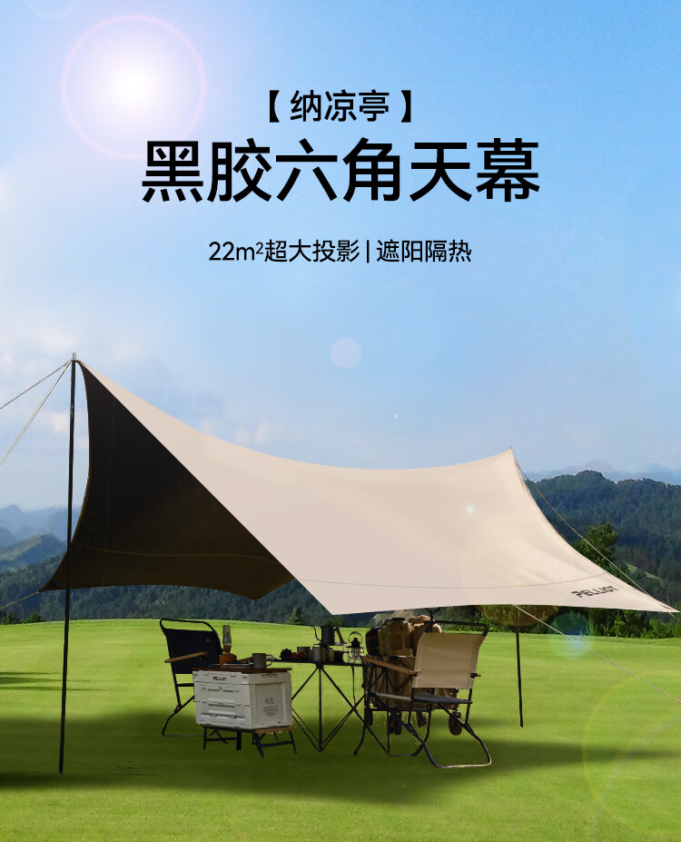 还没用,之前买了同款不带黑胶的天幕,颜值超高,夏天补充采购这款黑胶天幕,防晒效果更好吧,在伯希和家买了太多露营装备,值得信赖
