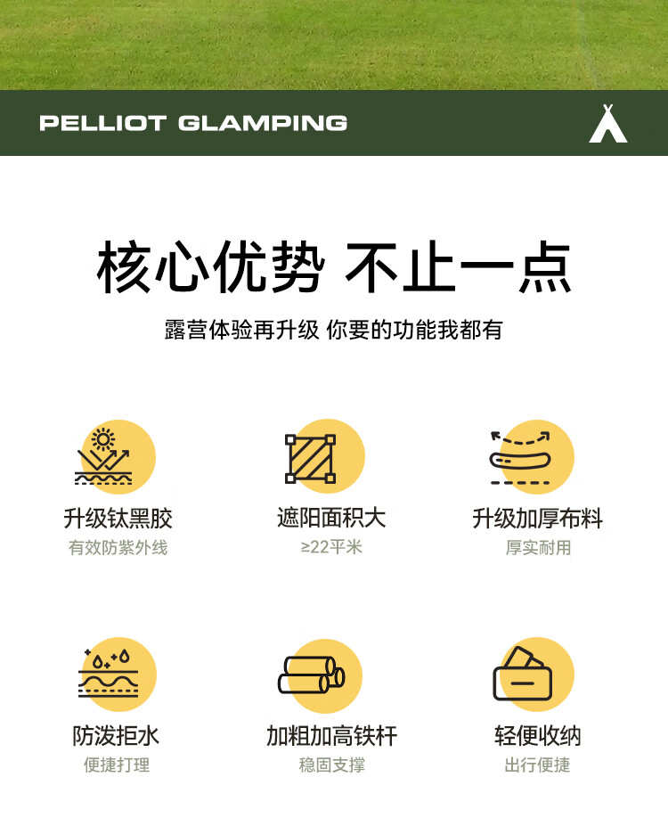 防水防晒效果很好,适用户外活动,容纳人数多,透气效果很好,展开阴影面积大,便于携带