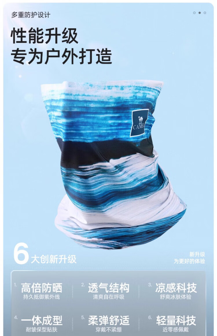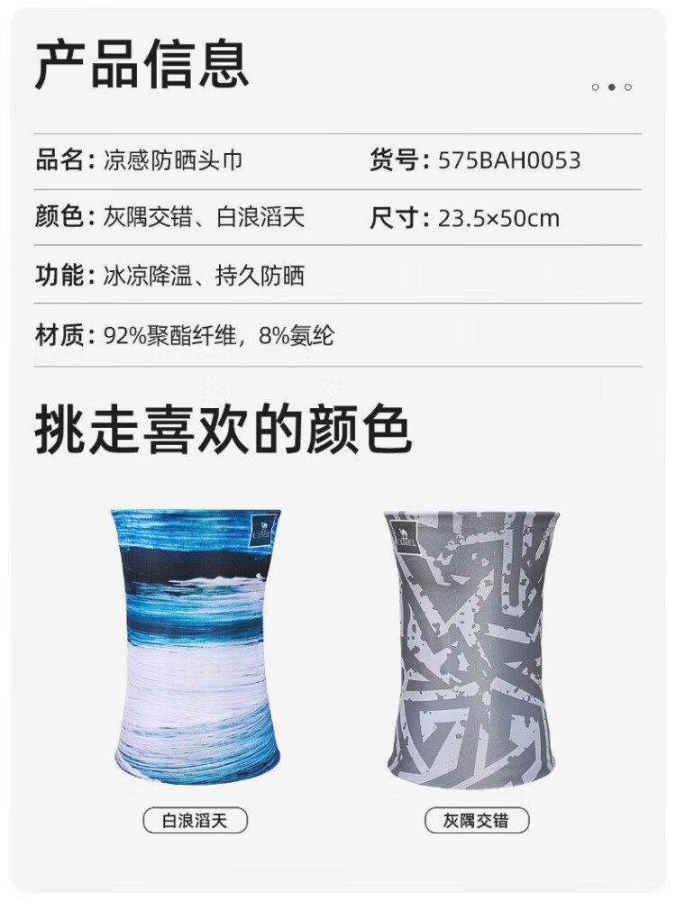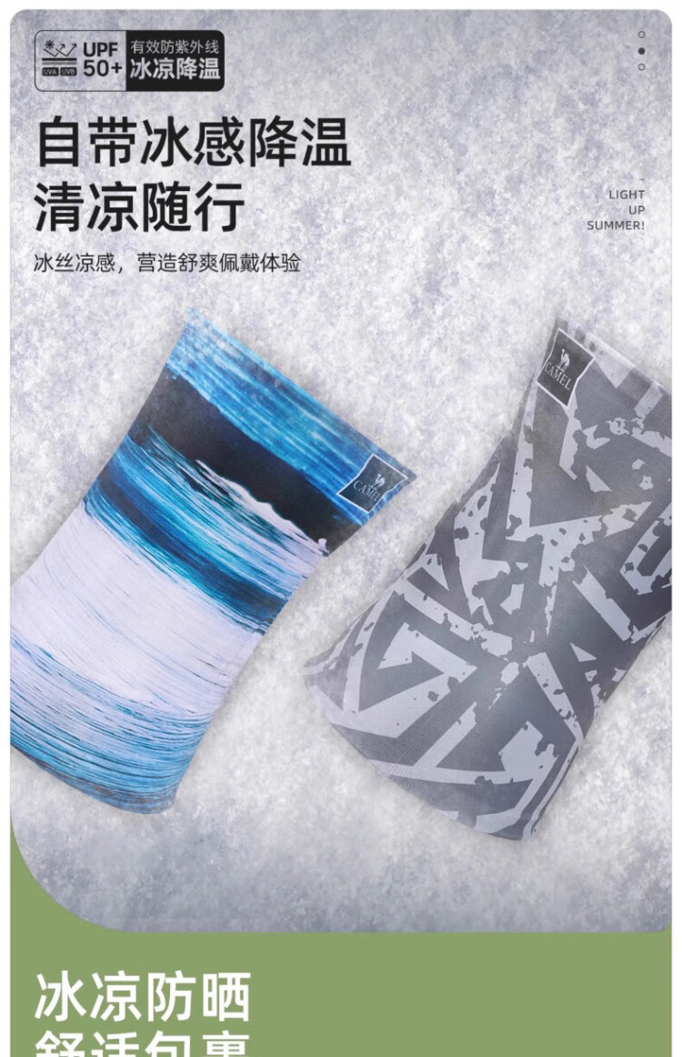 骆驼防紫外线魔术头巾冰丝防晒面罩骑行脖套运动薄款百变围脖 A1S3XA110,冰翎,UPF50+