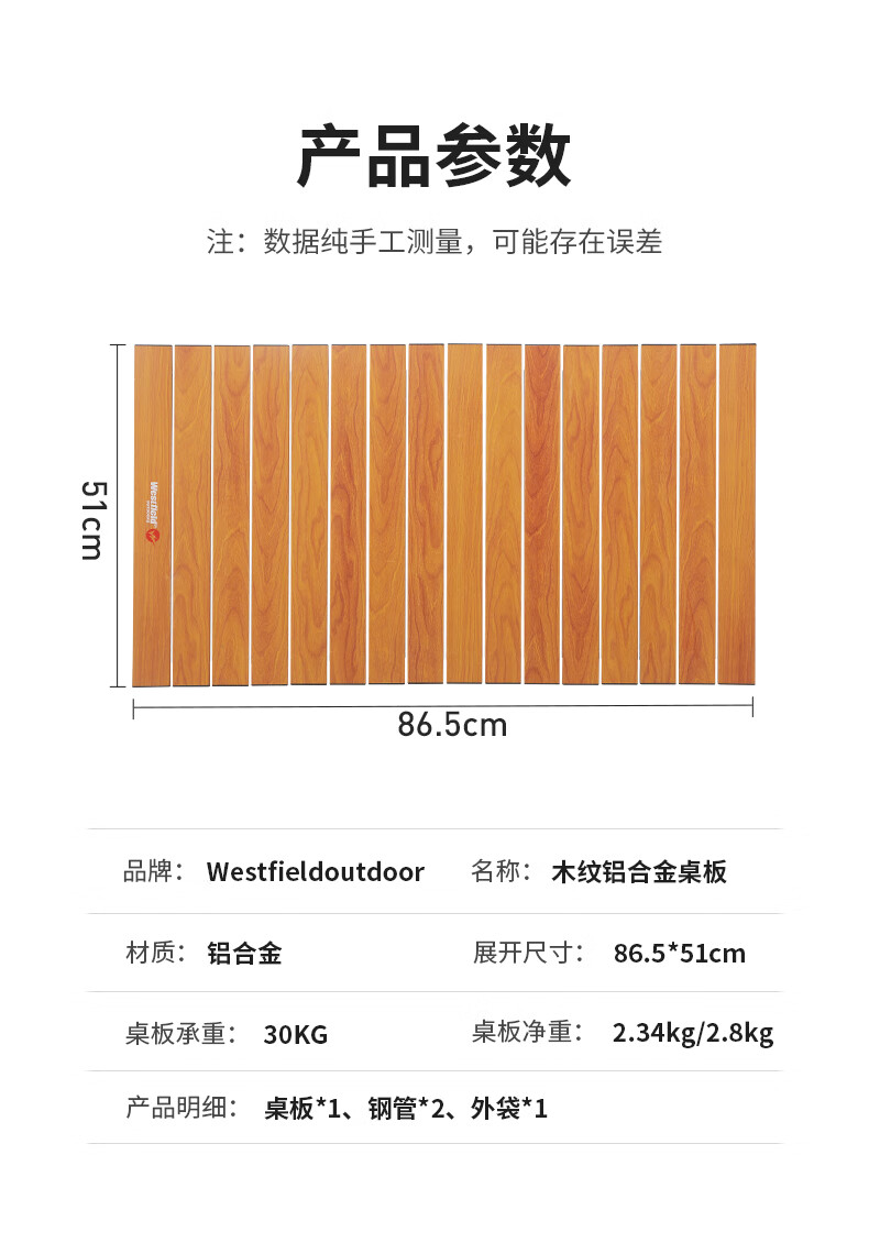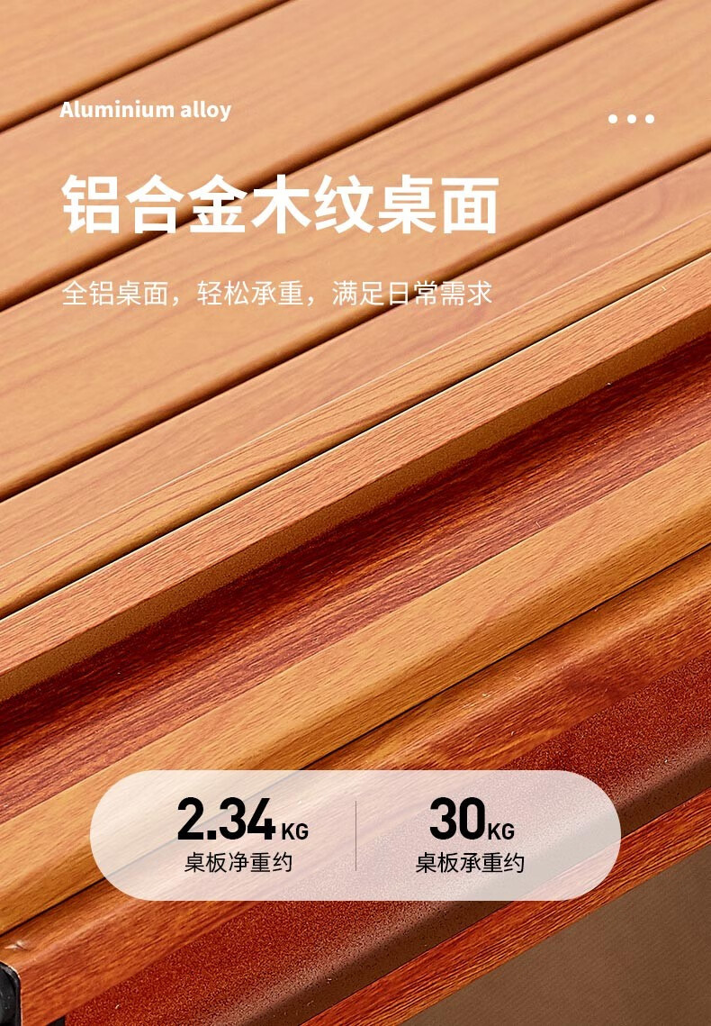 westfieldoutdoor蛋卷桌户外露营桌椅铝合金折叠桌子野餐装备 碳钢木纹丨中号 90cm