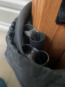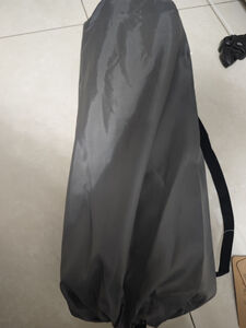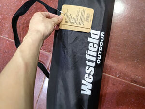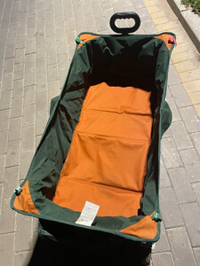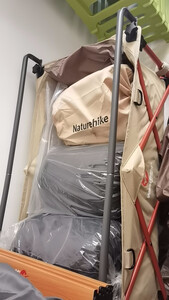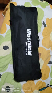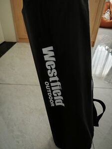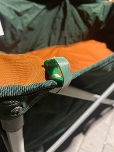 墨绿拉车是我飞的老款,没有布袋环绑缚铁管,但尺寸与升级款是一样的。DIY,直接拿扎带与尼龙粘带做了四个环,效果可以,再铺上一块儿桌布,立马高大上了,户外又多了一张桌子,方便。