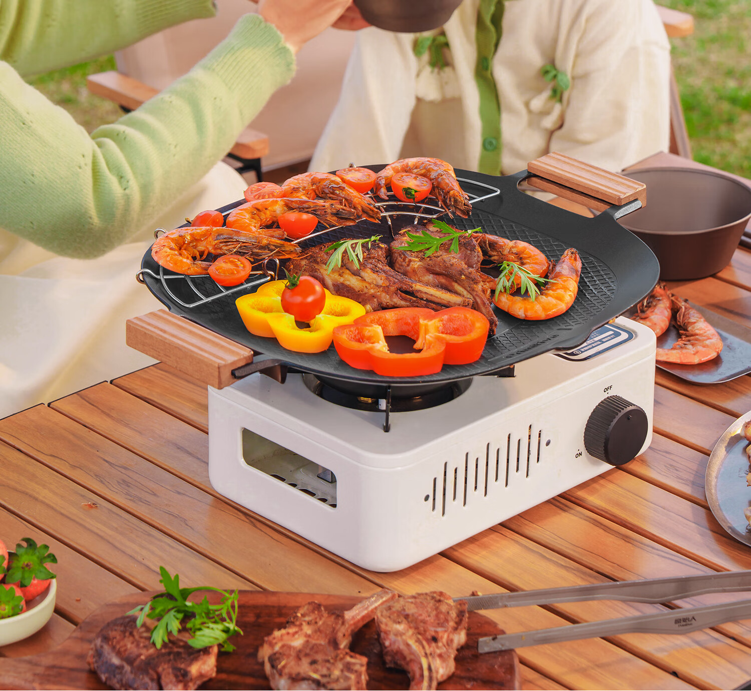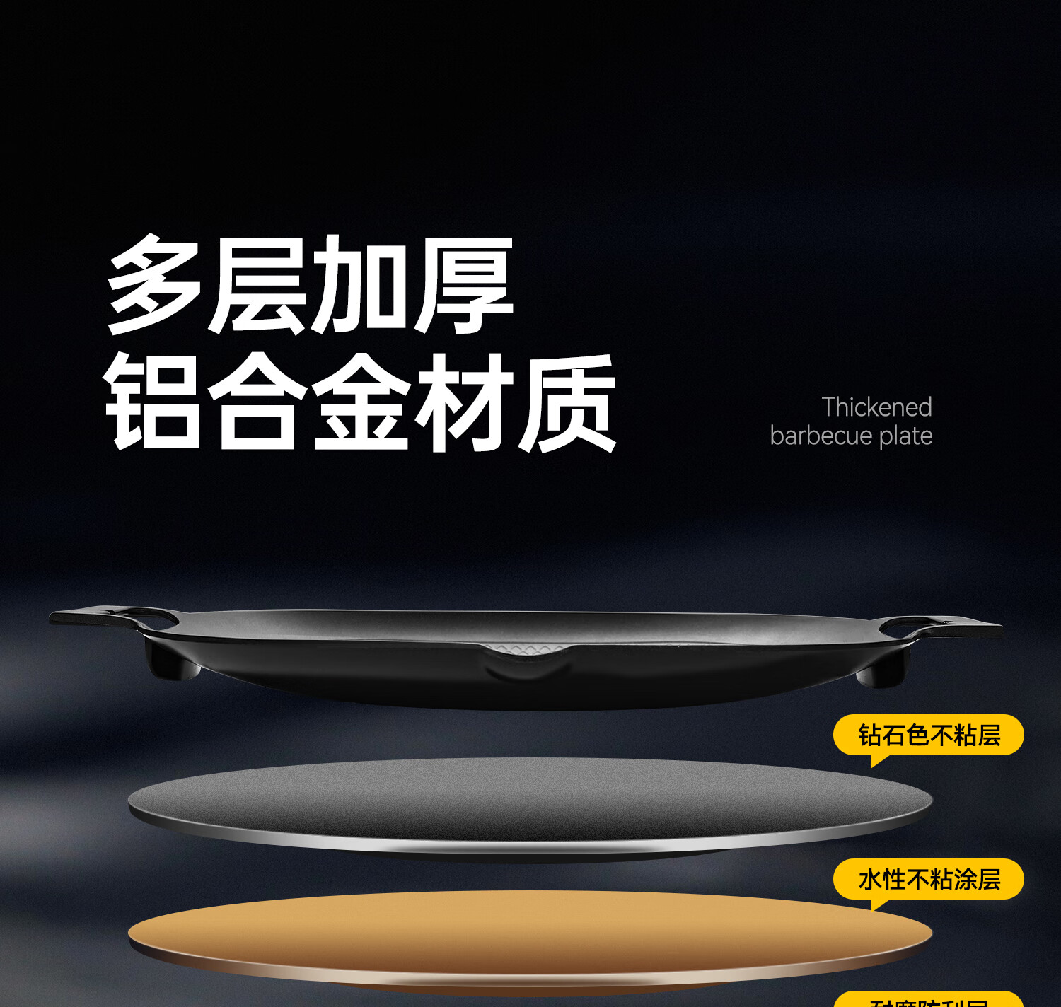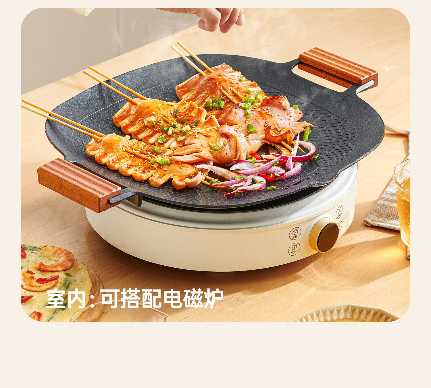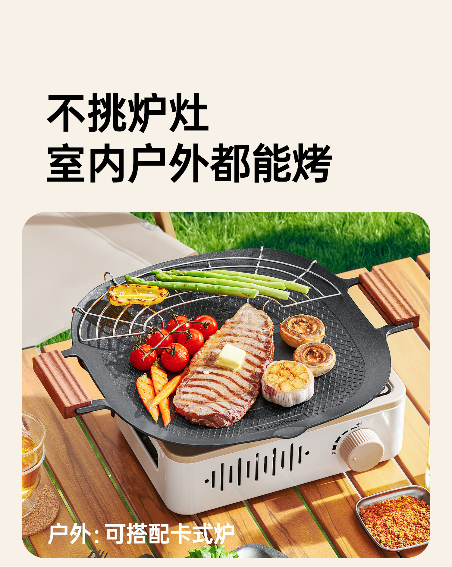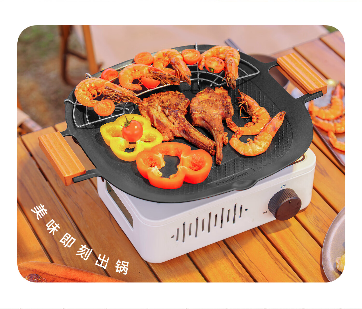 烤盘真心好用!导热超快,受热均匀,食物熟得快还不易焦。麦饭石涂层确实不粘,清洗太省心了。烤肉蔬菜都合适,露营家庭聚会必备,强烈推荐!