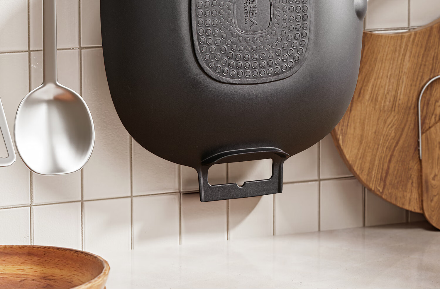 质量还可以,厚度适中,有对木手柄(不过是活动的,容易掉)防烫效果好,很信任原始人家的质量,不粘效果也很好,还有个晾油架,烤完放在上面晾凉很方便,很满意,喜欢喜欢!