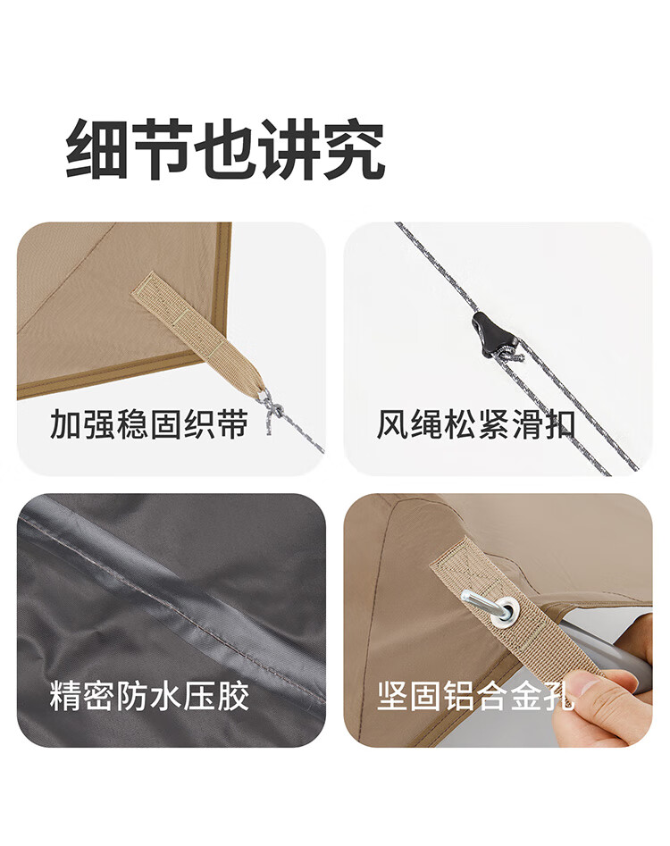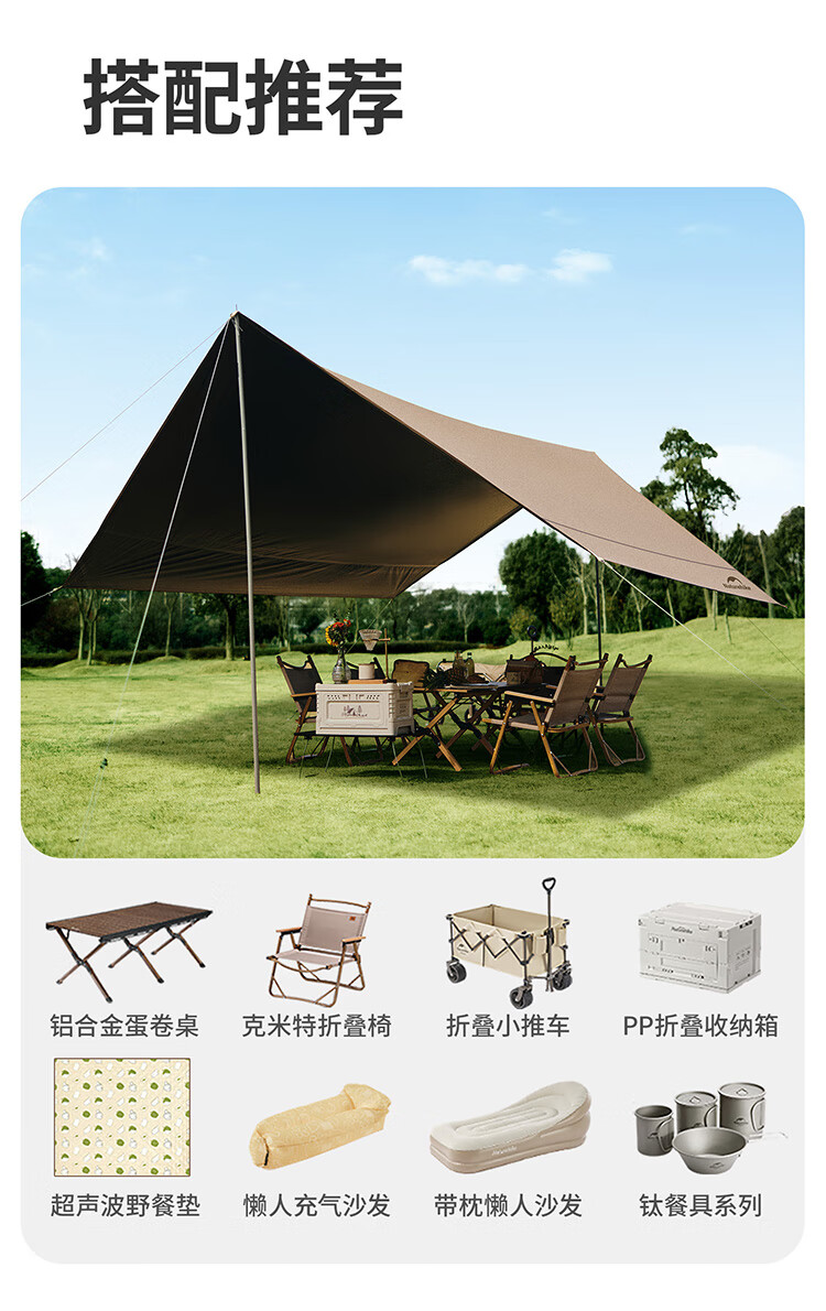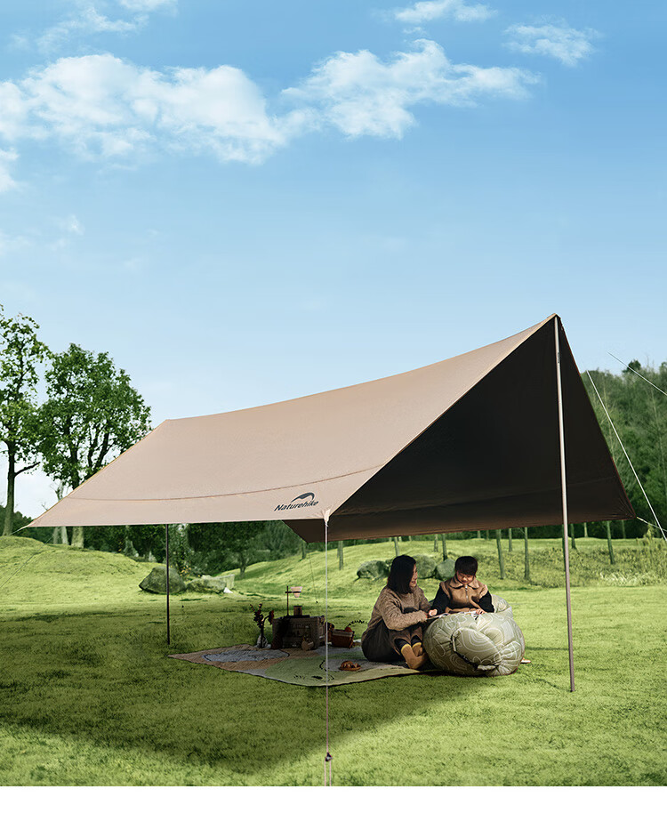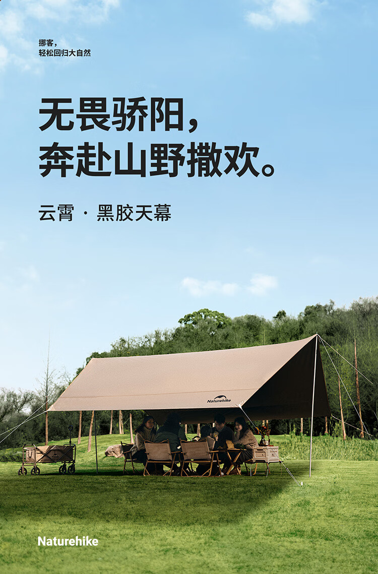 Naturehike挪客云霄黑胶天幕帐篷户外防雨防晒超大露营野营天幕便携遮阳棚 【11㎡ 6-8人】 深咖/小号