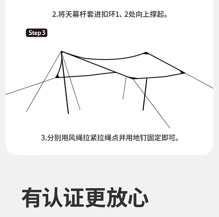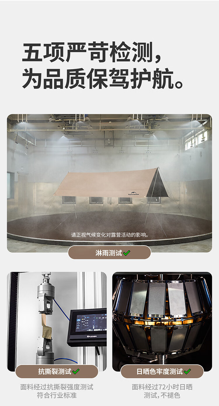天幕重量挺轻,防水防晒效果都不错,袋子防水也有提手,有黑胶,大热天很防晒,下雨天暴雨很防水,四级大风不在话下,这个天幕不错