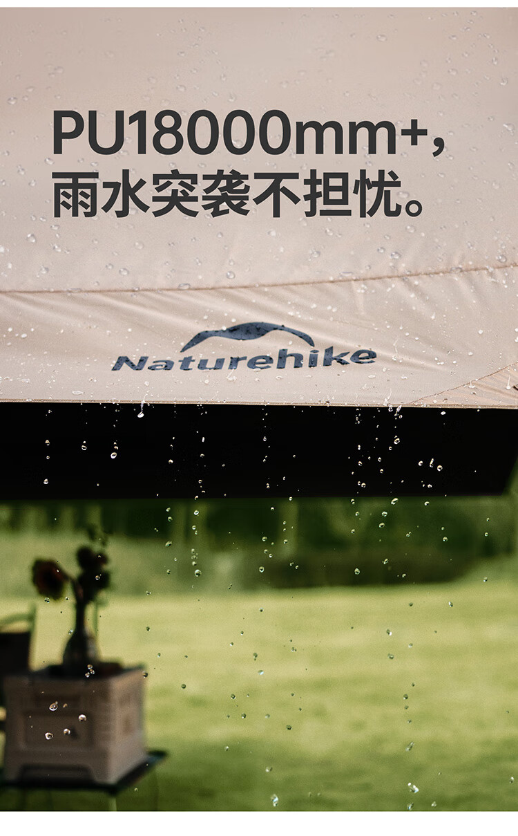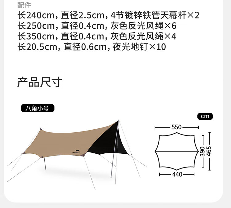 Naturehike挪客黑胶天幕帐篷户外露营野营防雨防晒六角天幕 便携式遮阳棚 深咖/六边形/大号【10-12人】