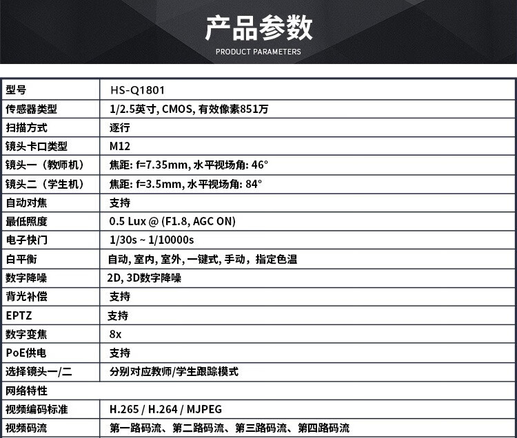 华视动狐华视4K超清电子云镜自动跟踪教学录播摄像机自动聚焦智能互动教学导播切换跟踪会议室录播室摄像头 录播 【教师/学生电子云镜跟踪摄像机】
