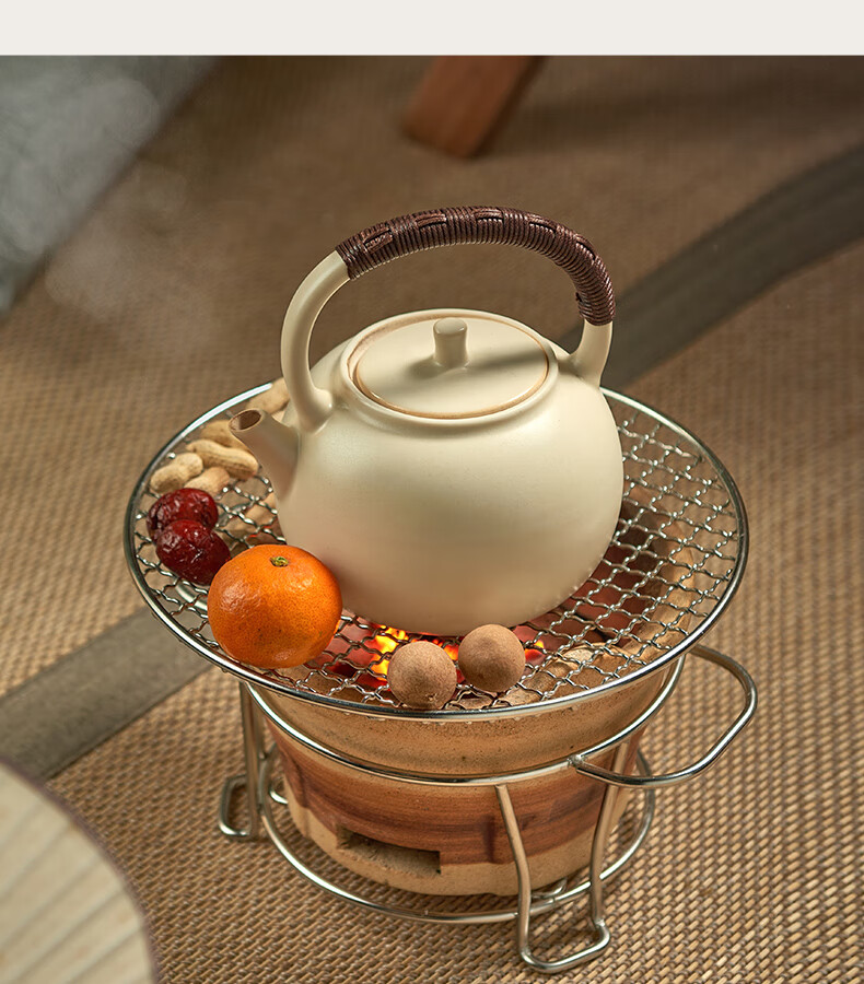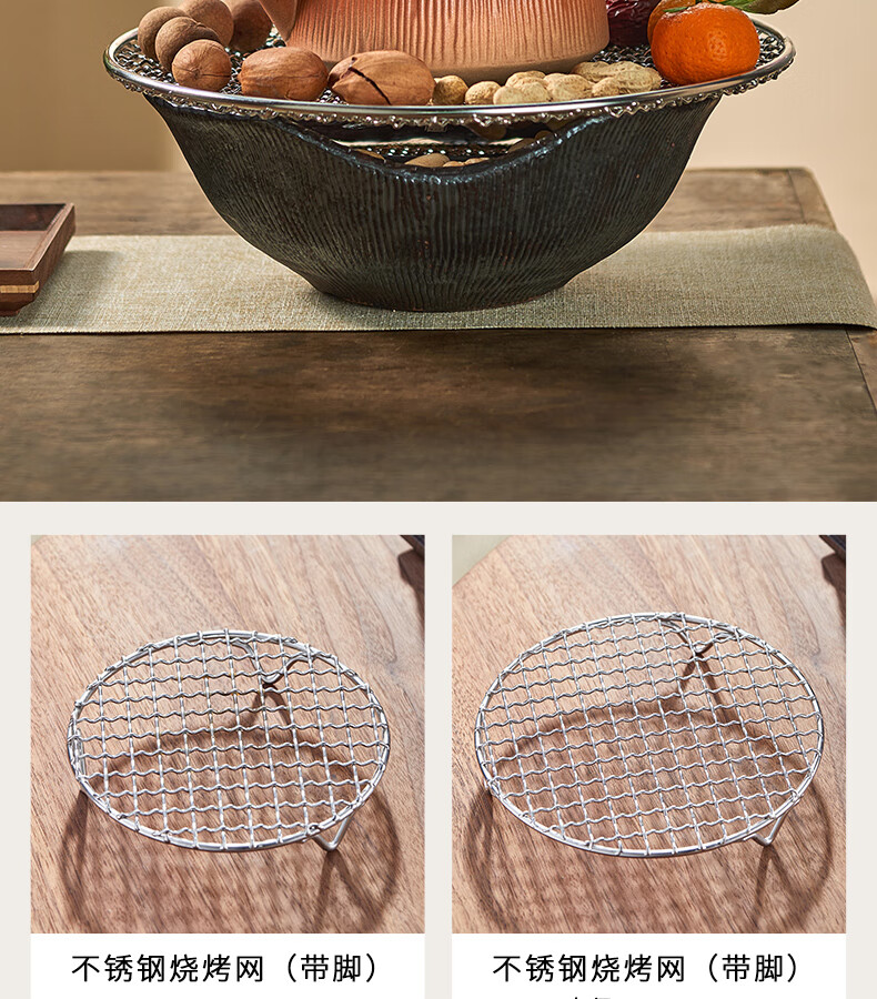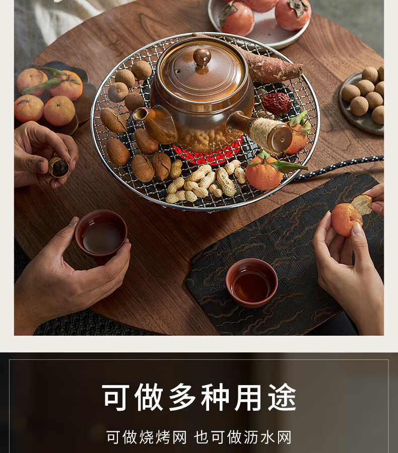 忆壶茶(YIHUTEA)围炉煮茶烤网圆形炭火烤网架不锈钢烤网电陶炉方格网圆形烤盘 圆形炭炉+25cm烤网+支架