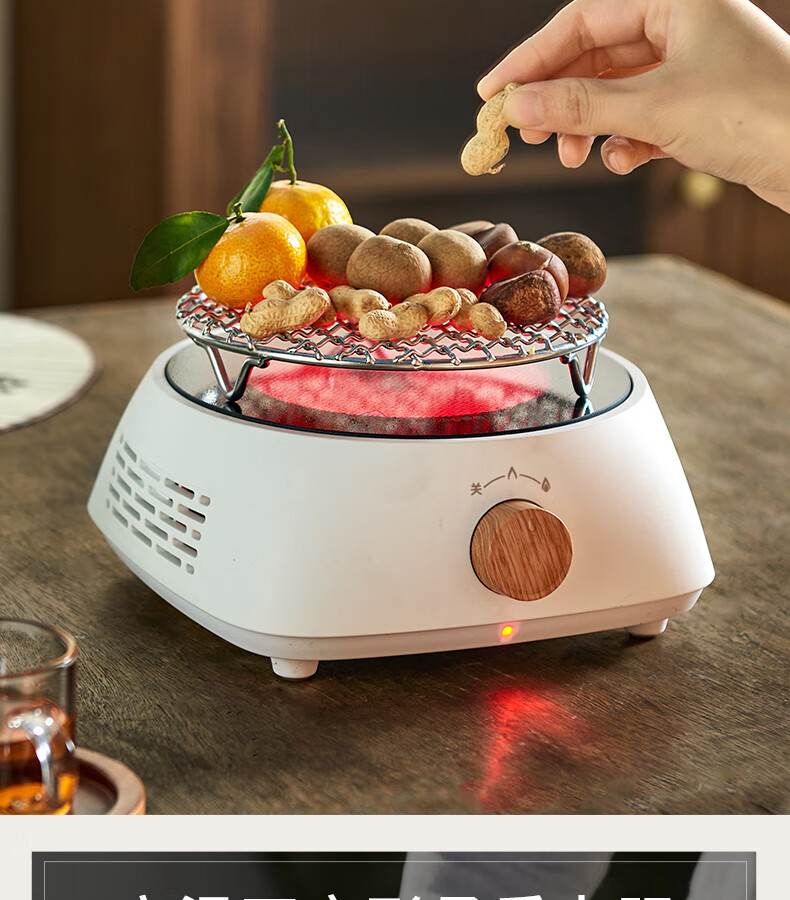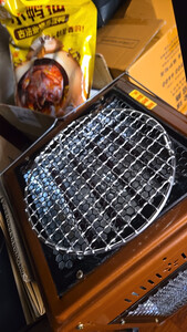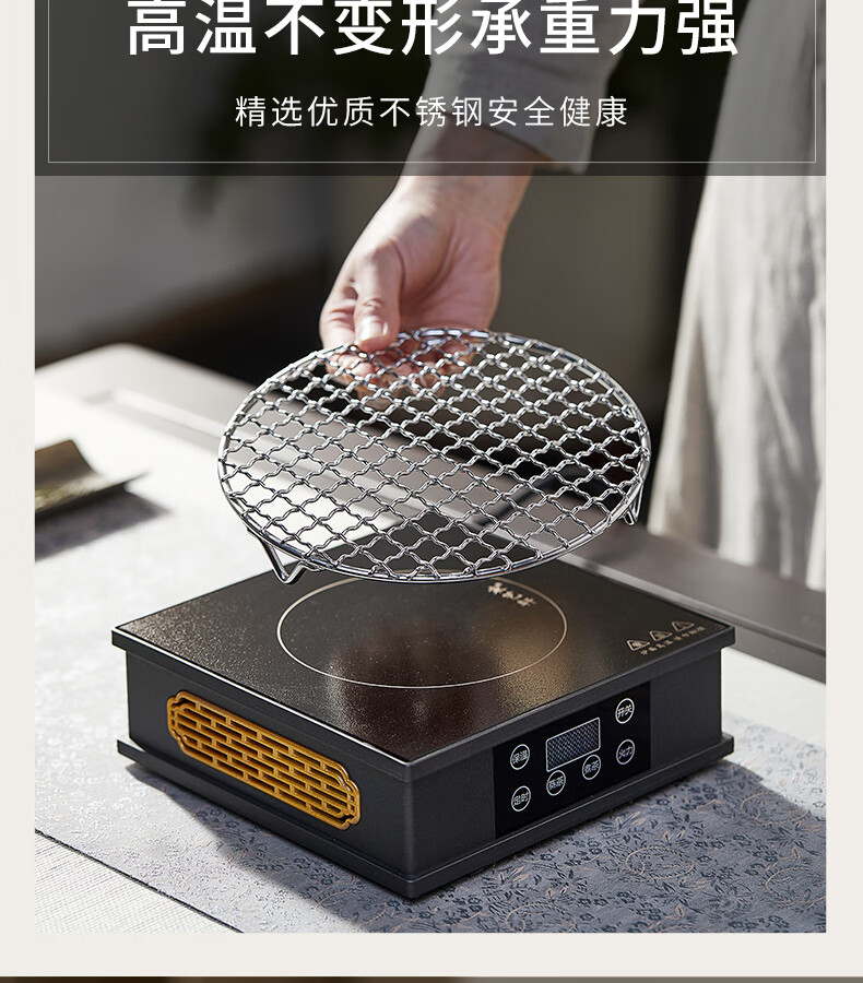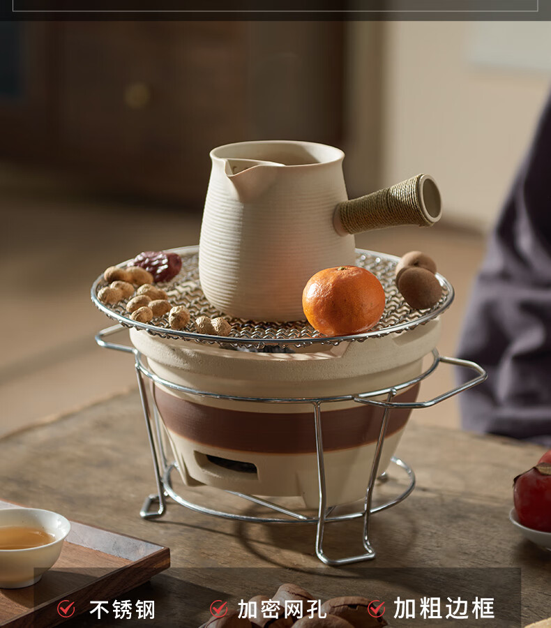 买的时候没仔细看,28厘米的没有支架脚,但是搭配小米电陶炉刚刚好,烤网刚好覆盖电陶炉的面板,(图源网络,图上的网小一点)围炉煮茶很有氛围