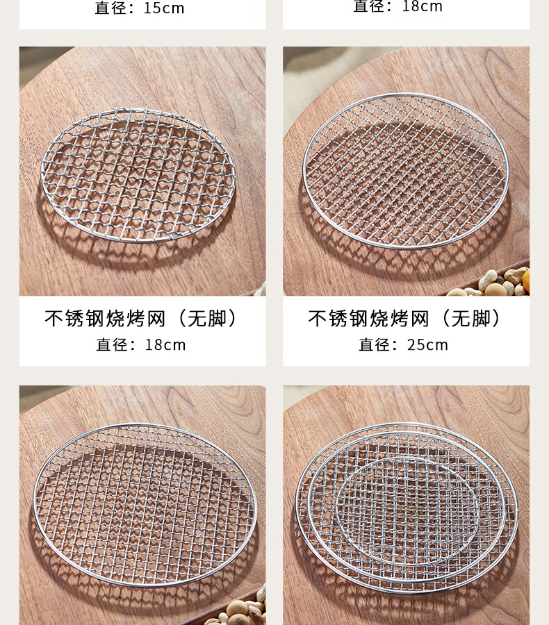 不锈钢烧烤网腿加厚沥油水熏烤肉家用空气炸锅网格架烘 不锈钢烤网带脚直径13cm