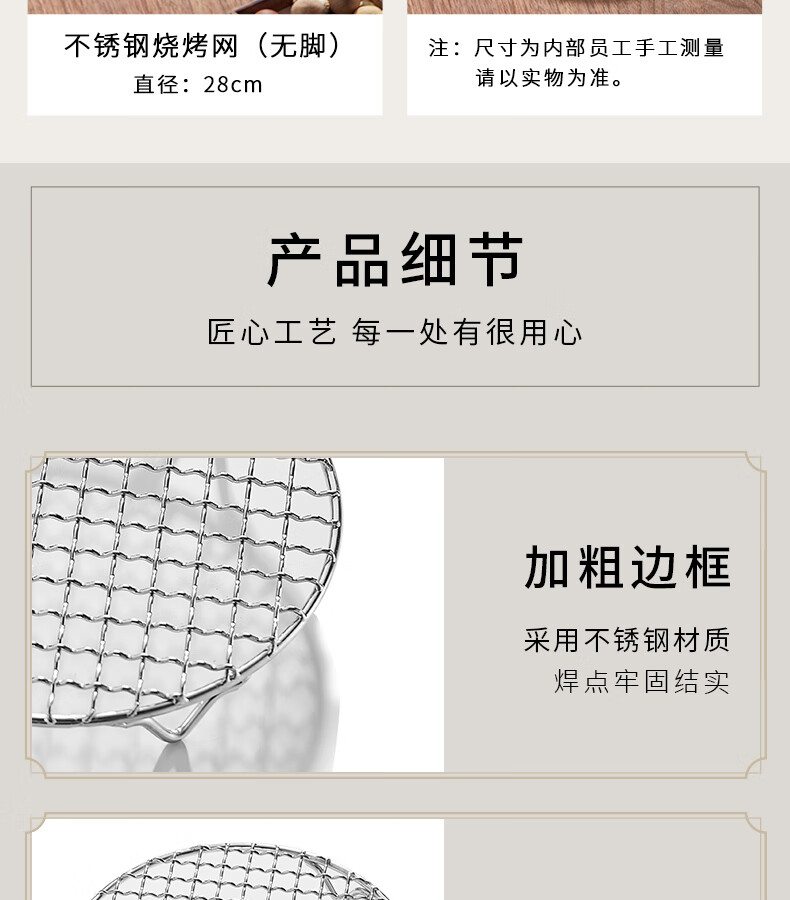 骆穂豆不锈钢圆形烧烤网加粗加厚户外沥油油炸炭火烤肉网格围炉煮茶烤网 直径35厘米(配送烧烤刷)