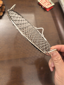 比较厚实,有一定的重量,做工很精致,焊接点都很平滑,平面有一点弧度。用磁铁吸了一下,不吸。用来烤个水果,放在锅里当个蒸架都挺好。