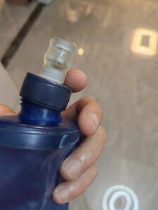 用了几次了,感觉挺好用的,不漏水,背在腰包后面也不打身体,很贴身,喝水的时候要用牙轻轻咬一下才会出水,喝完后用防尘盖盖上,10km 跑 250ml 够了