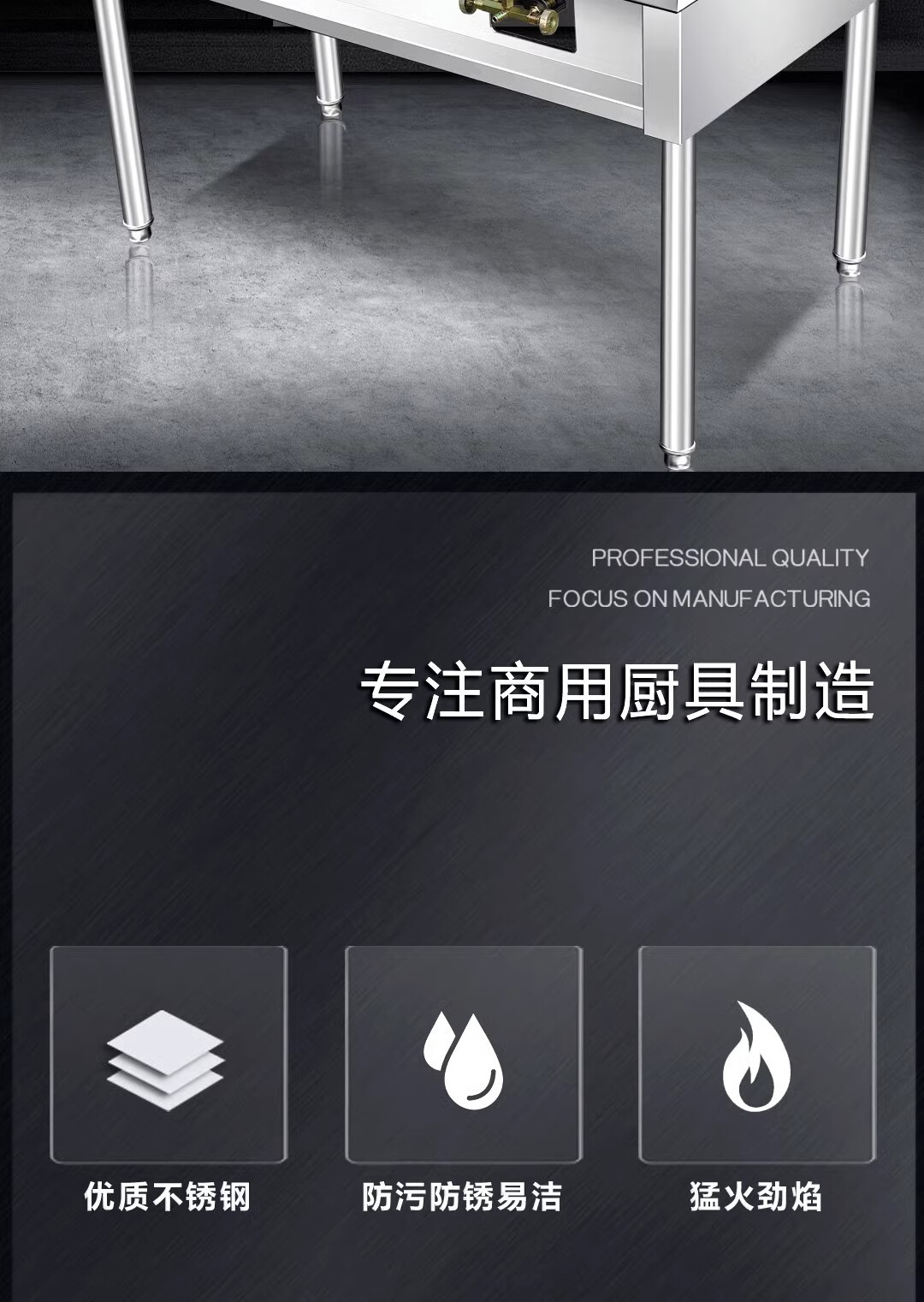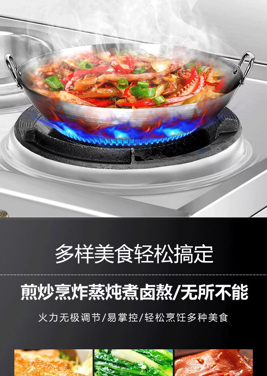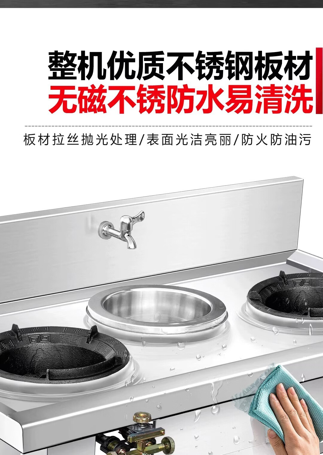 希凡里猛火燃气灶 不锈钢商用 家用防风灶 饭店用强劲猛火炉灶一体 长82宽65高80单炒单温带炉头