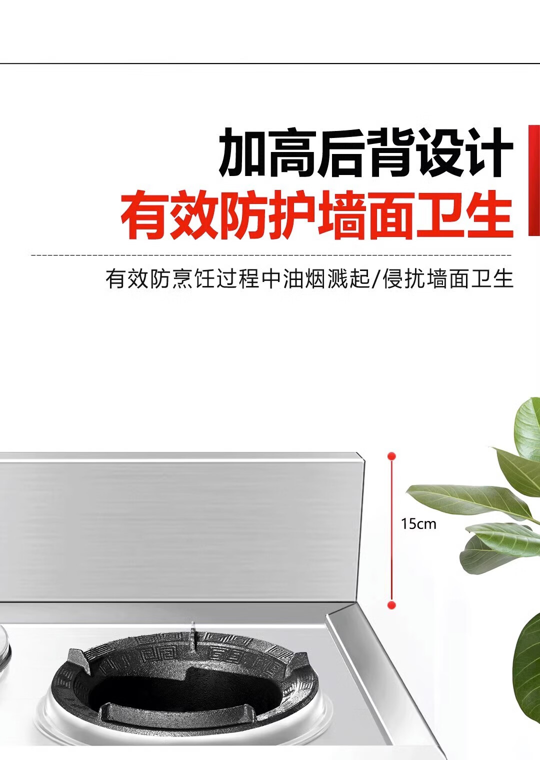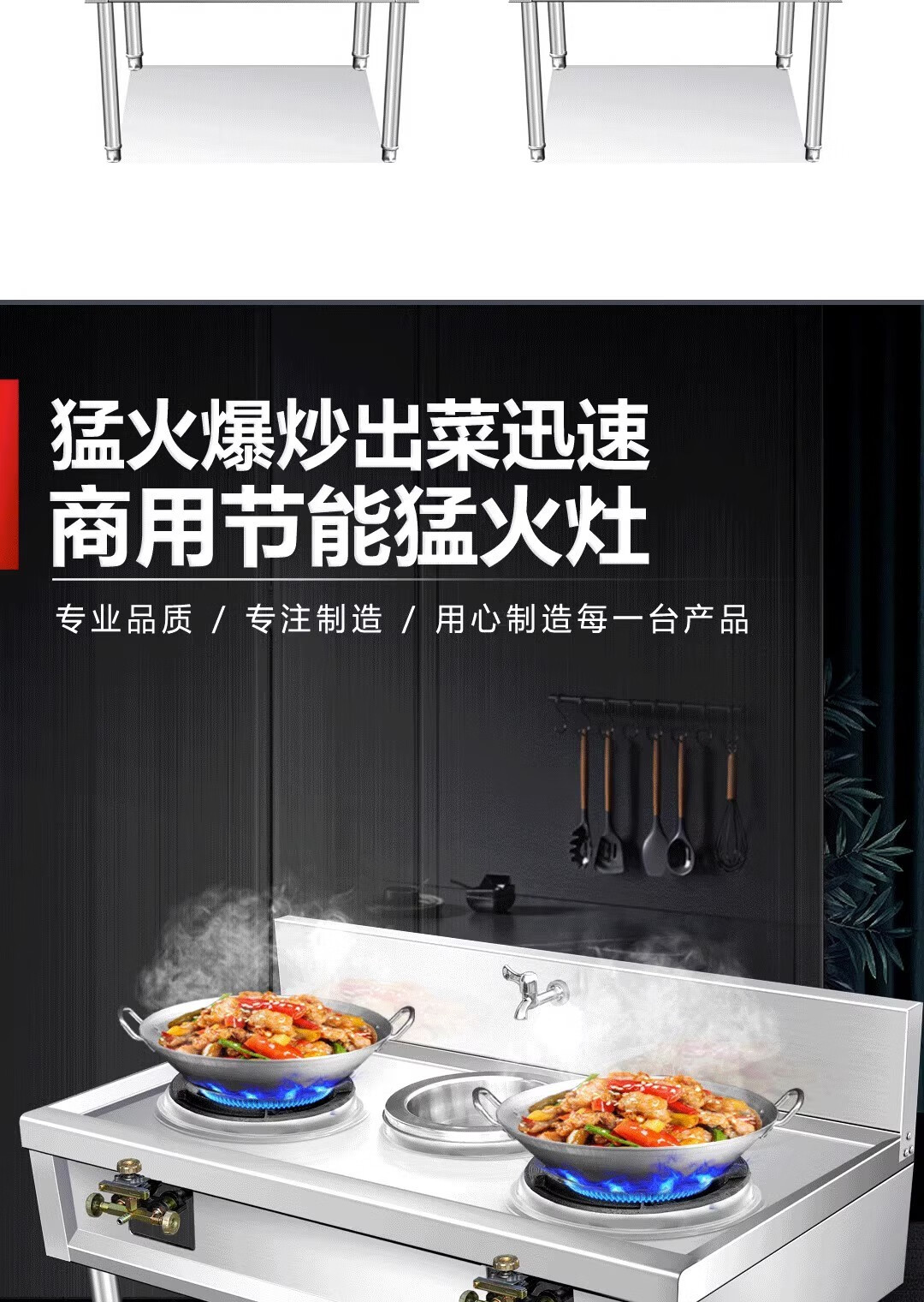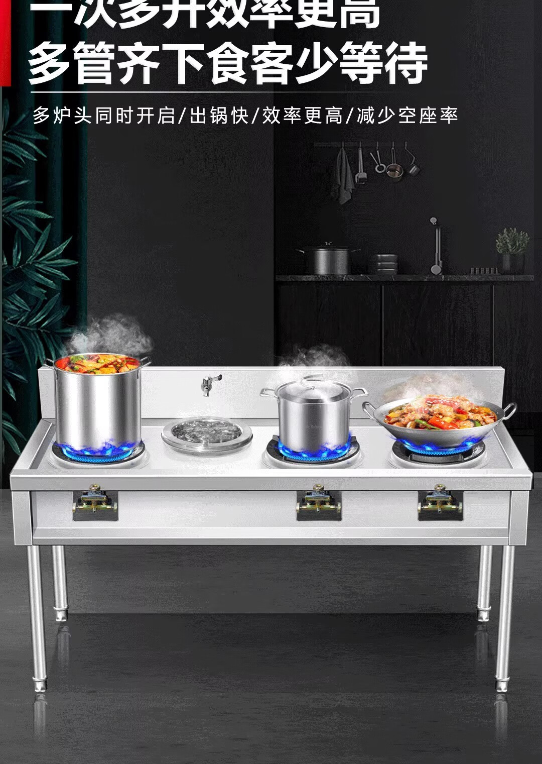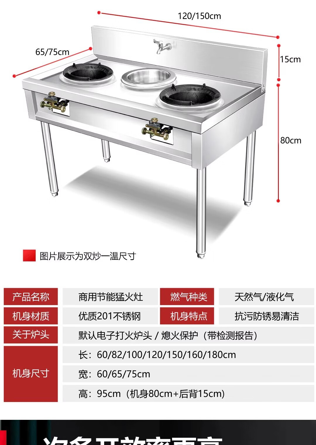 希凡里猛火燃气灶 不锈钢商用 家用防风灶 饭店用强劲猛火炉灶一体 长82宽65高80单炒单温带炉头