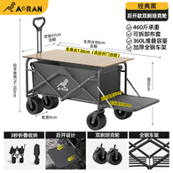 Aoran露营推车营地车户外折叠野餐车野营车小拖车摆摊车带桌板露营装备 经典黑【后开款】双刹坦克轮+桌板