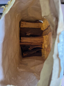 牛皮纸包装袋完好无损,柴火很干,烟少容易点燃!火旺旺!多次回购了!谢谢