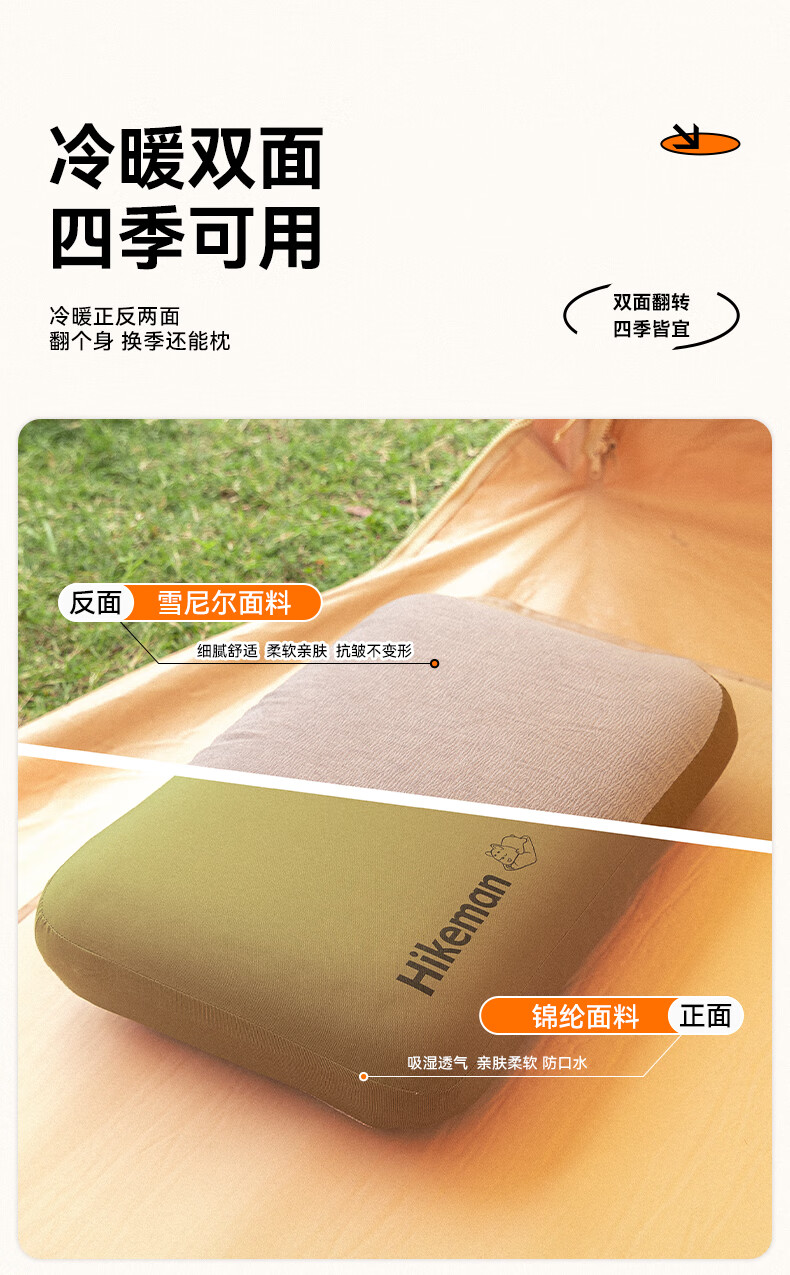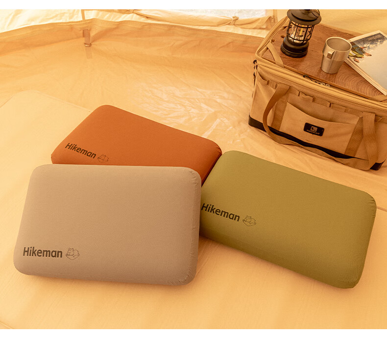 HIKEMAN憨客户外自动充气旅行枕午睡枕便携舒适海绵人体工学枕头可拆洗 【抹茶绿】雪尼尔
