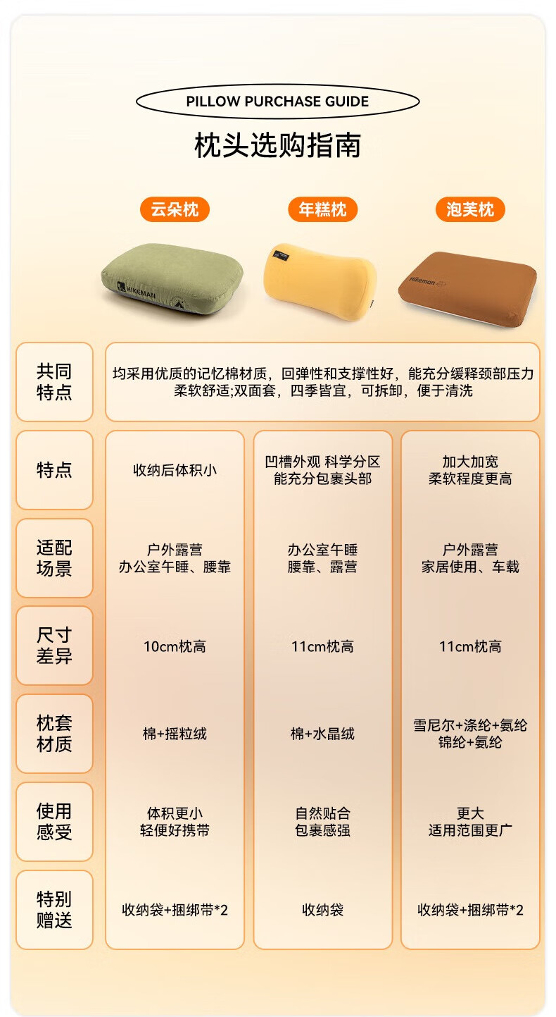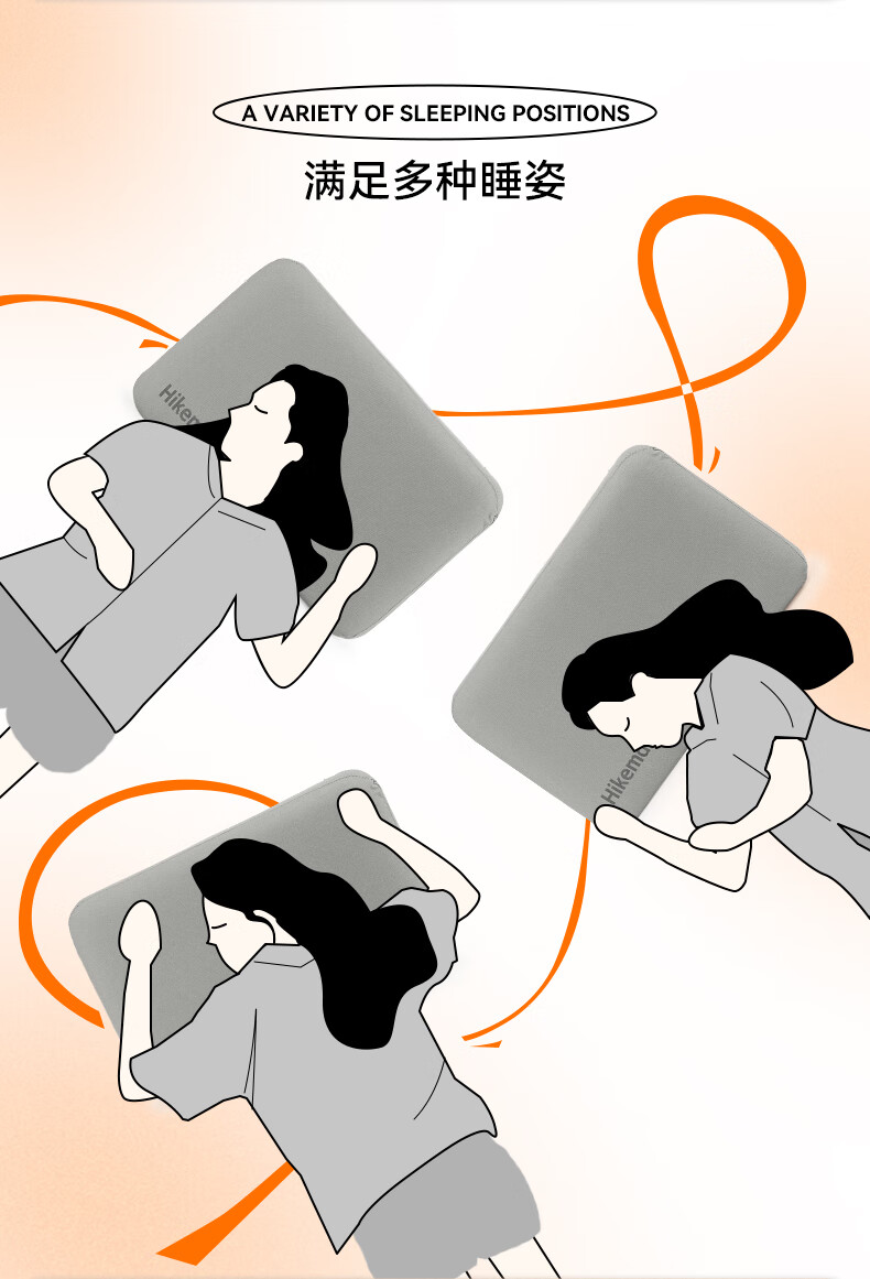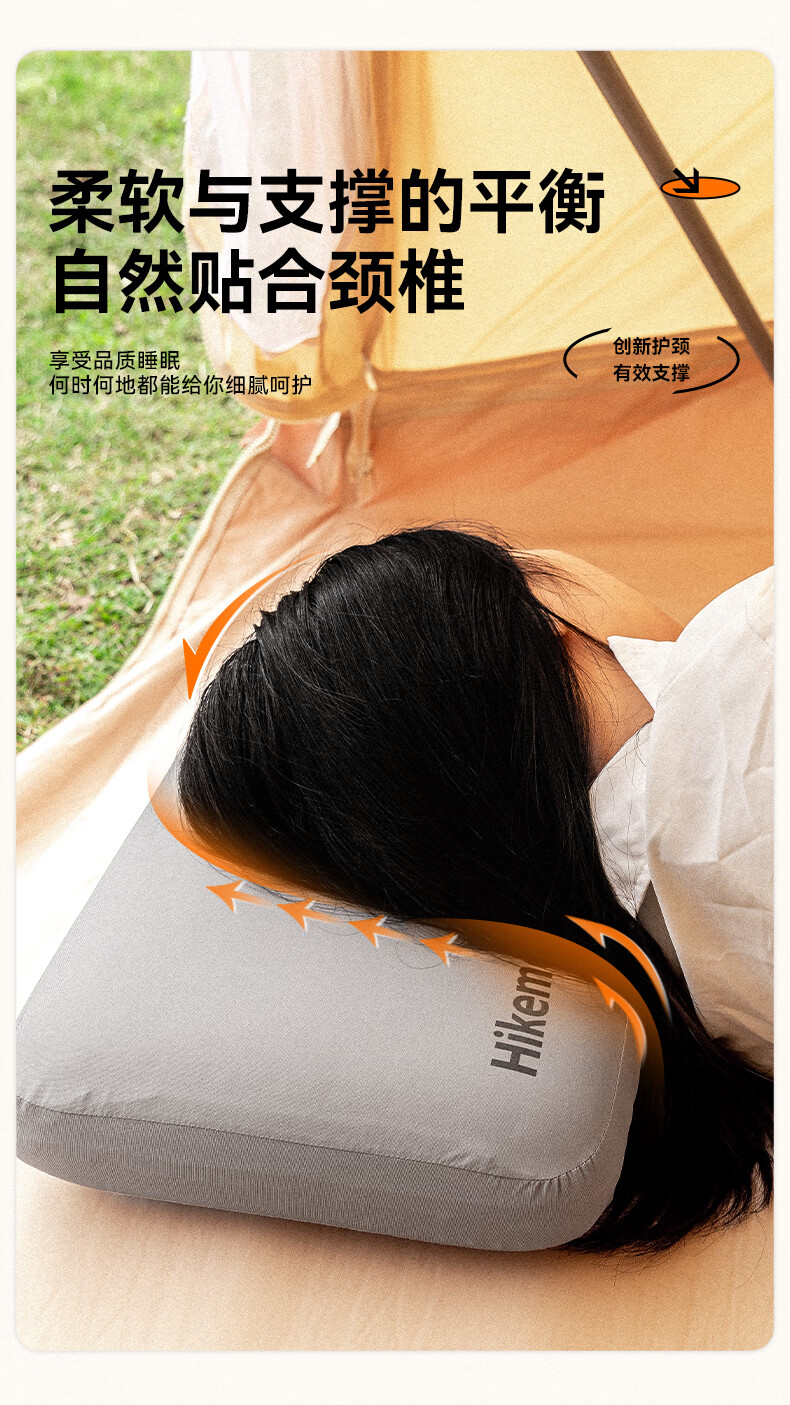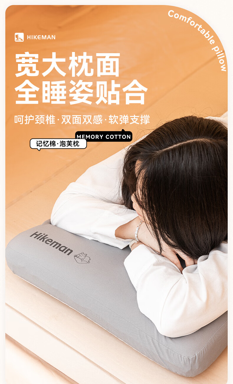 HIKEMAN憨客户外记忆棉枕头护颈睡眠枕慢回弹记忆枕家用露营枕头午睡靠枕 云朵枕-灰色 送收纳袋