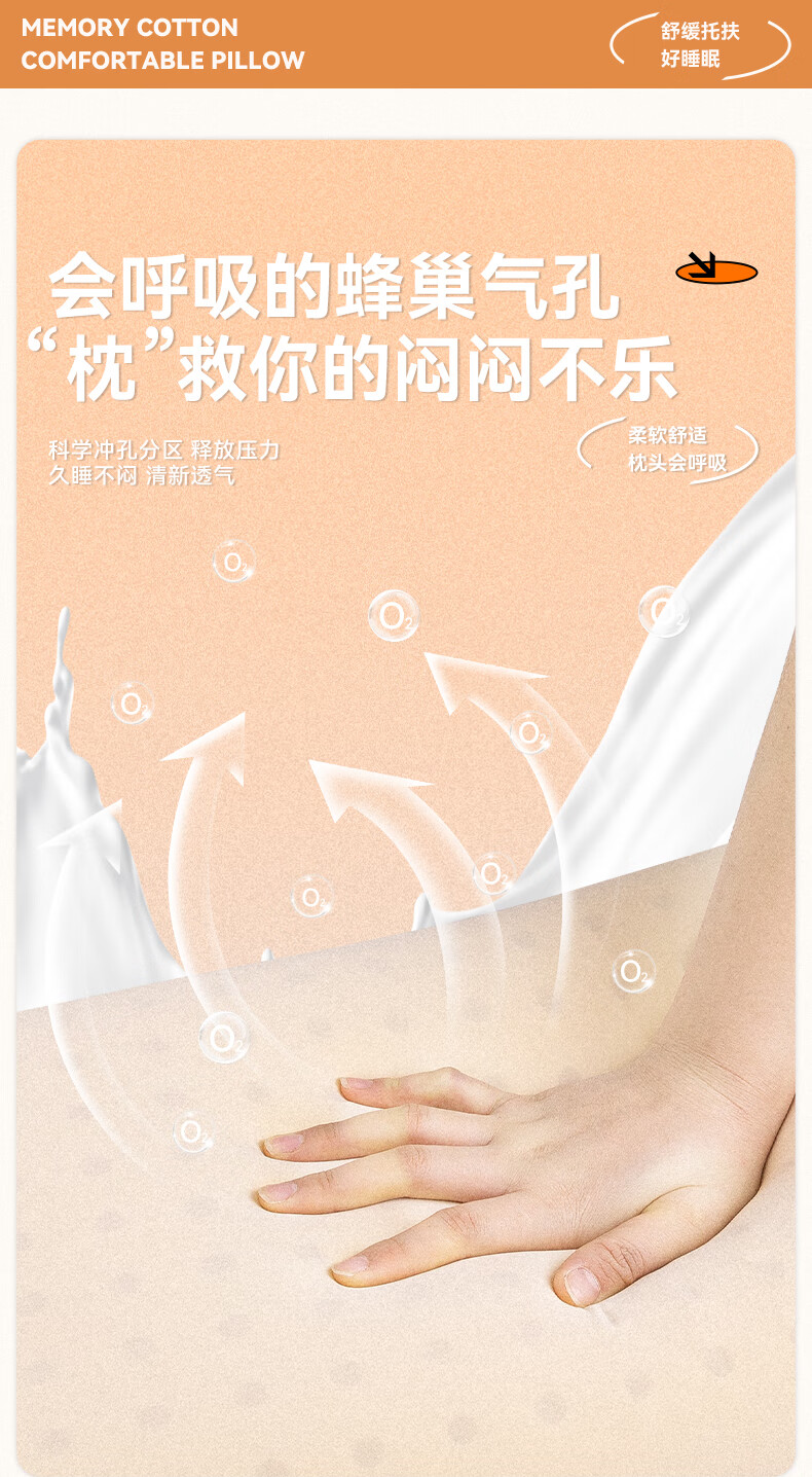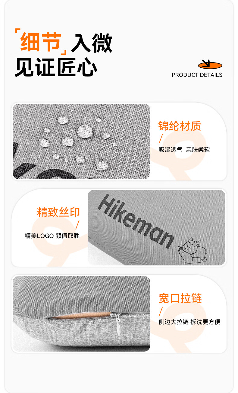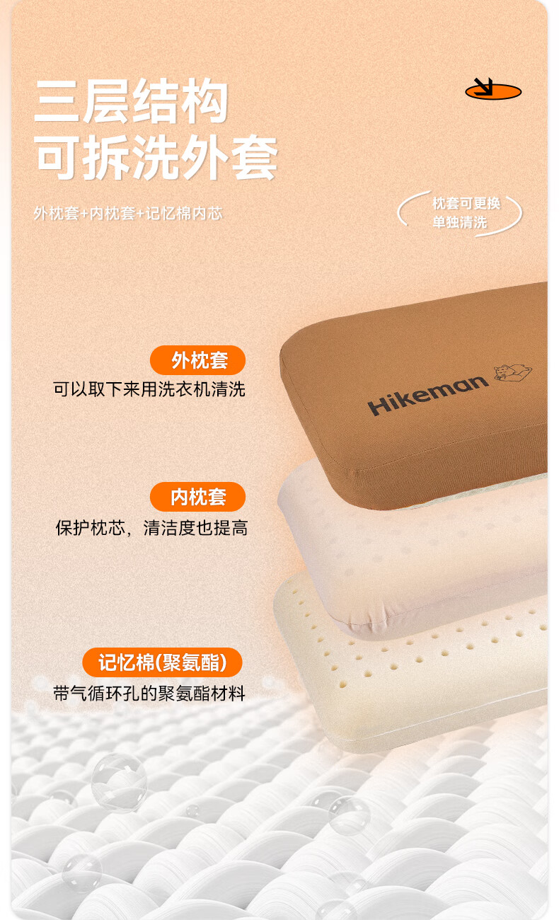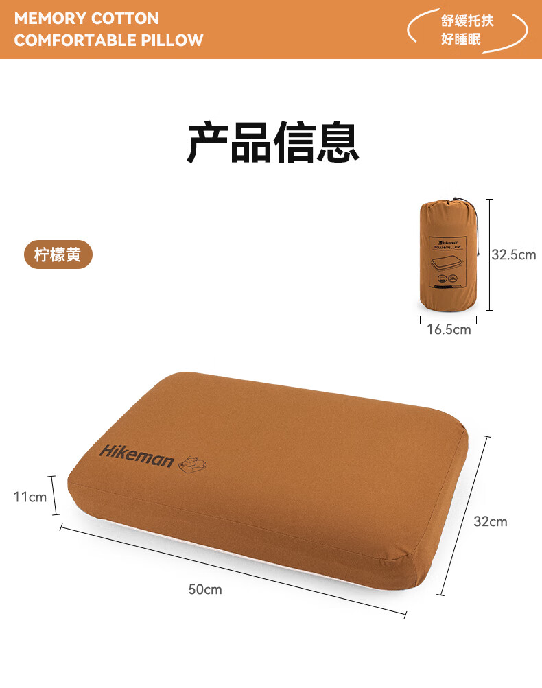 HIKEMAN憨客户外记忆棉枕头护颈睡眠枕慢回弹记忆枕家用露营枕头午睡靠枕 云朵枕-灰色 送收纳袋