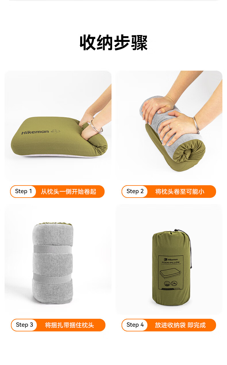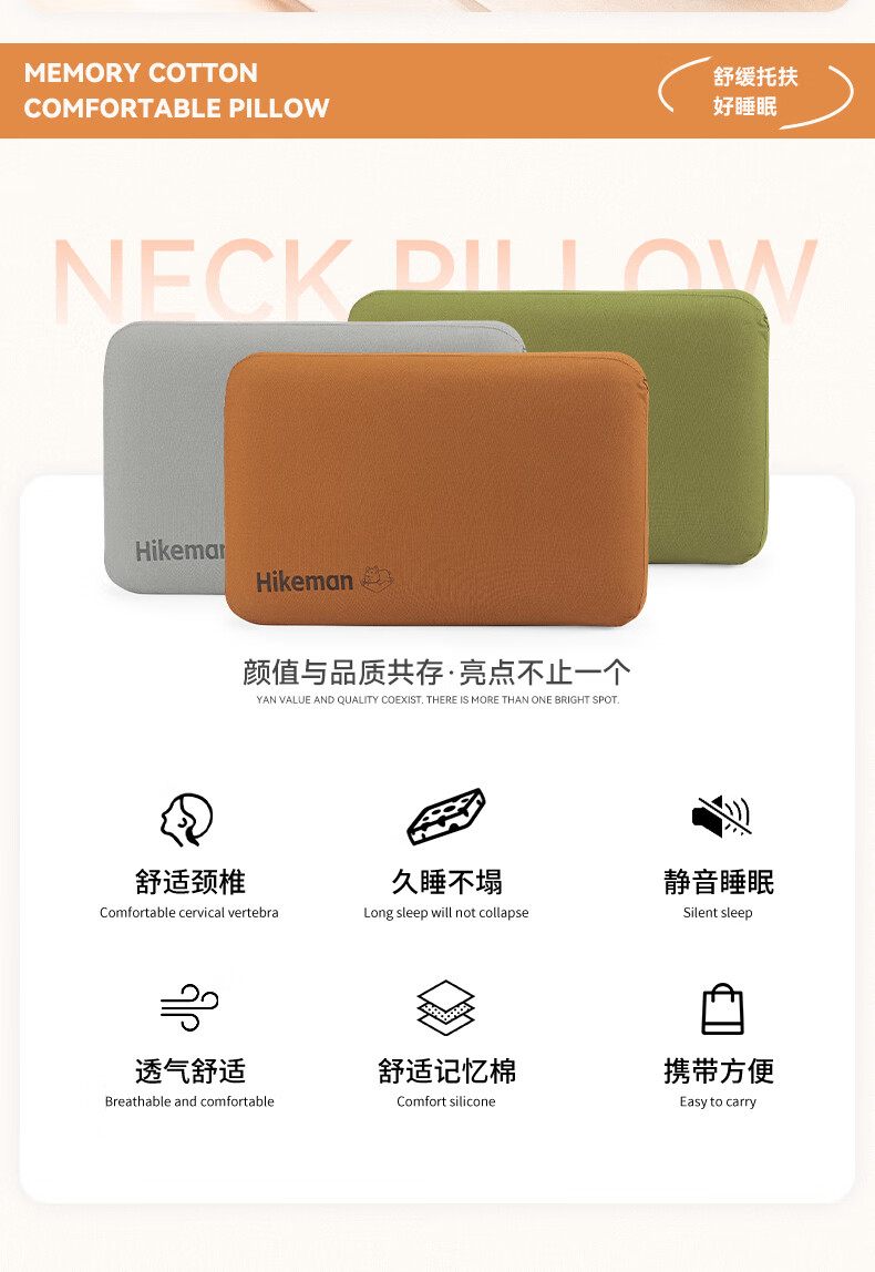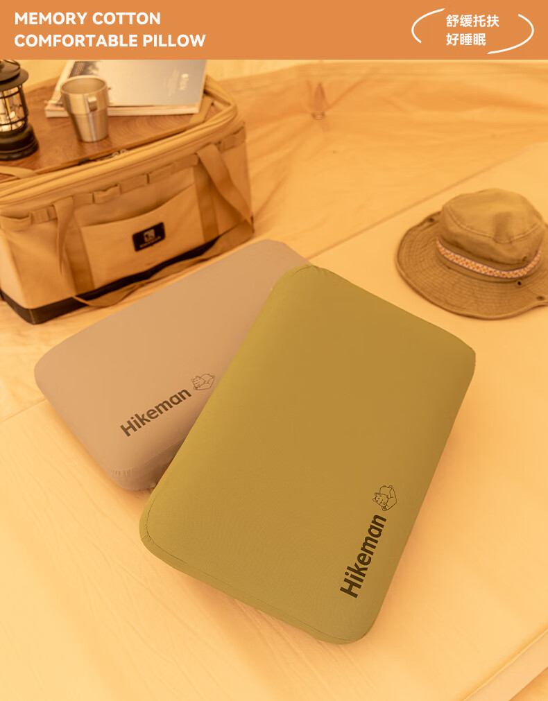 HIKEMAN憨客户外记忆棉枕露营便携护颈枕头旅行自充气高回弹静音睡眠神器 【抹茶绿】深睡护颈记忆棉