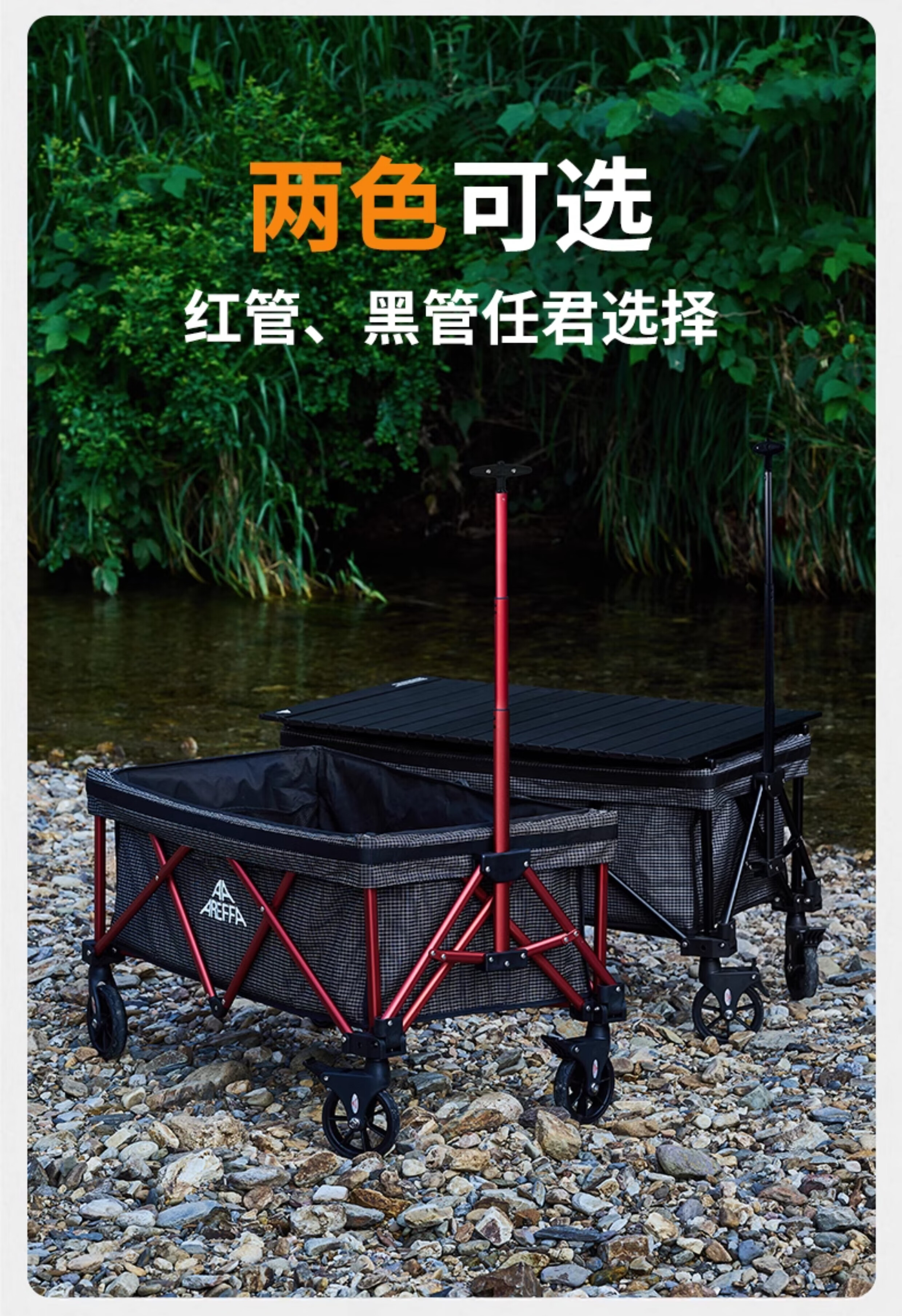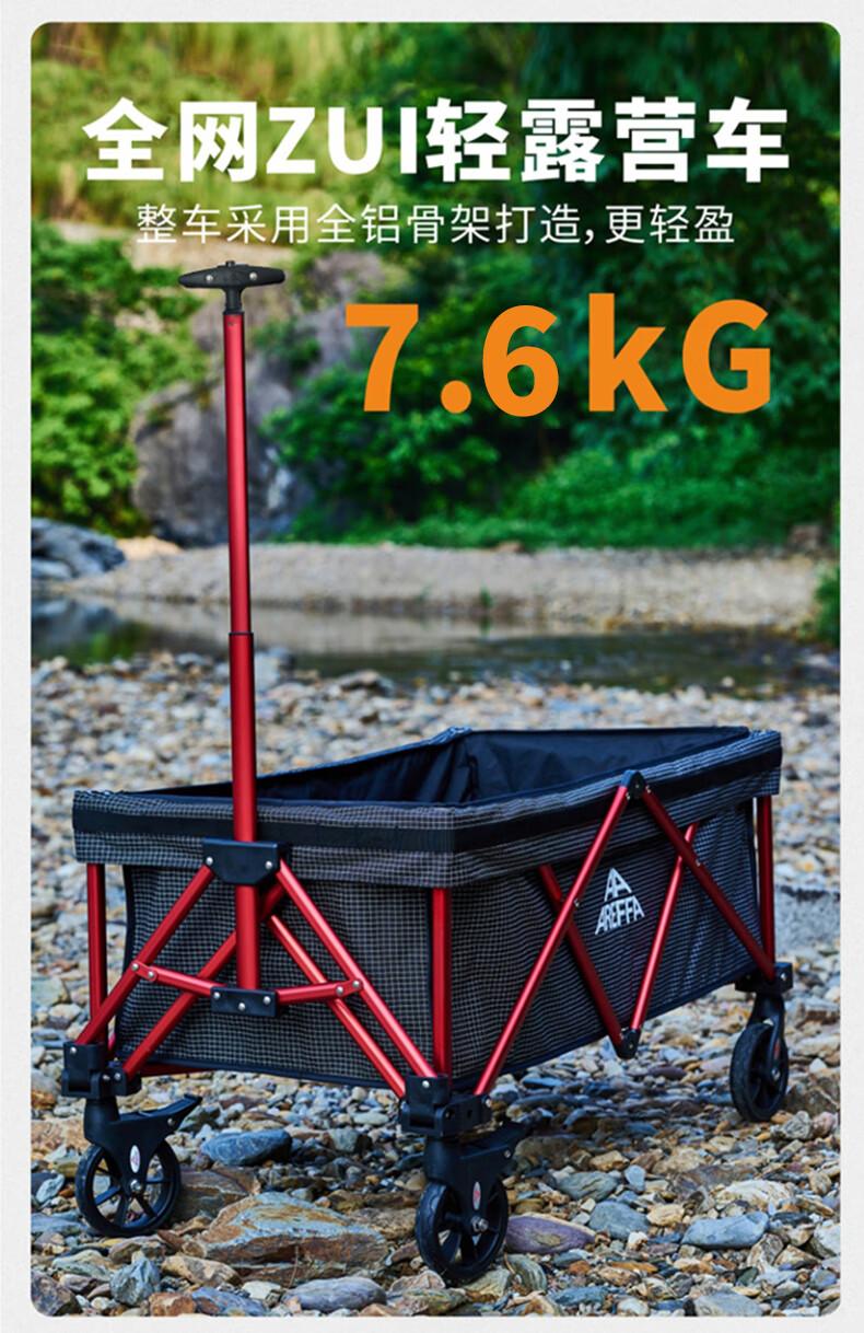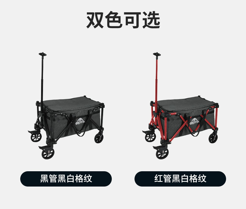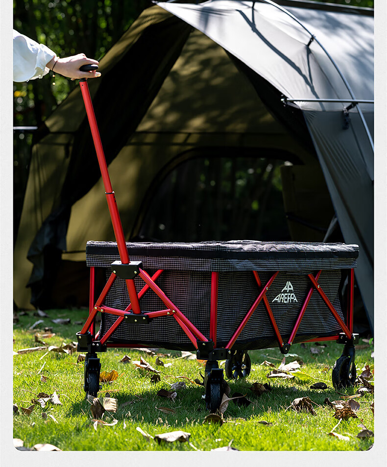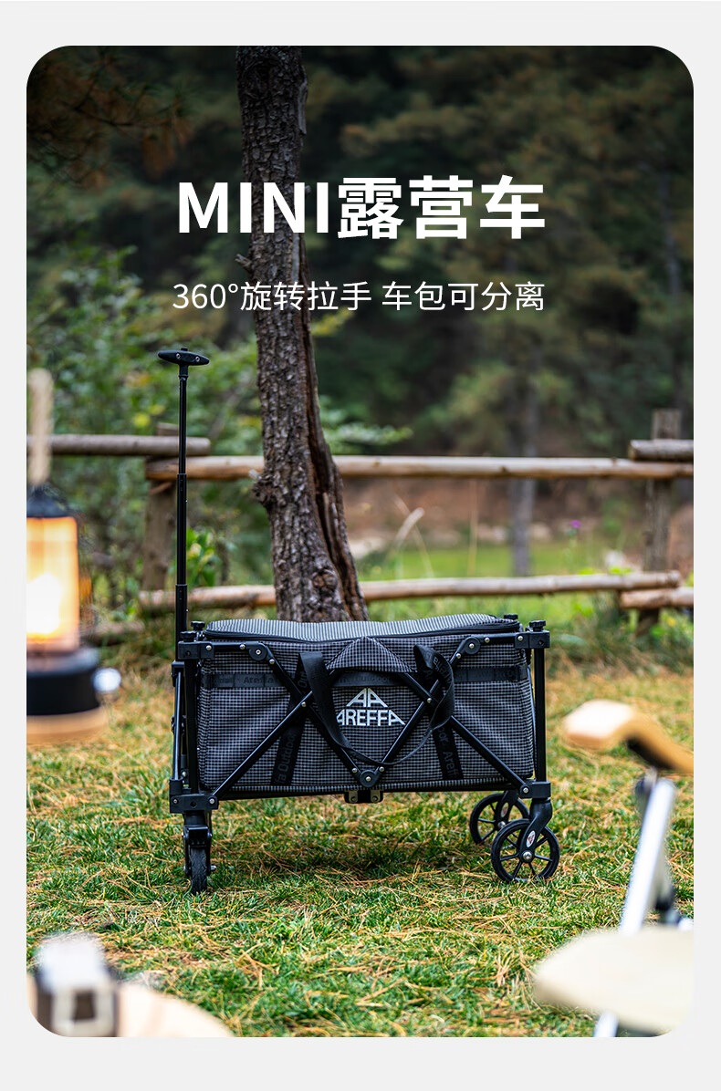 AREFFA户外营地推车可折叠小推车营地车露营推车拖车小拉车手推车小容量 【黑管】黑白格纹mini露营车