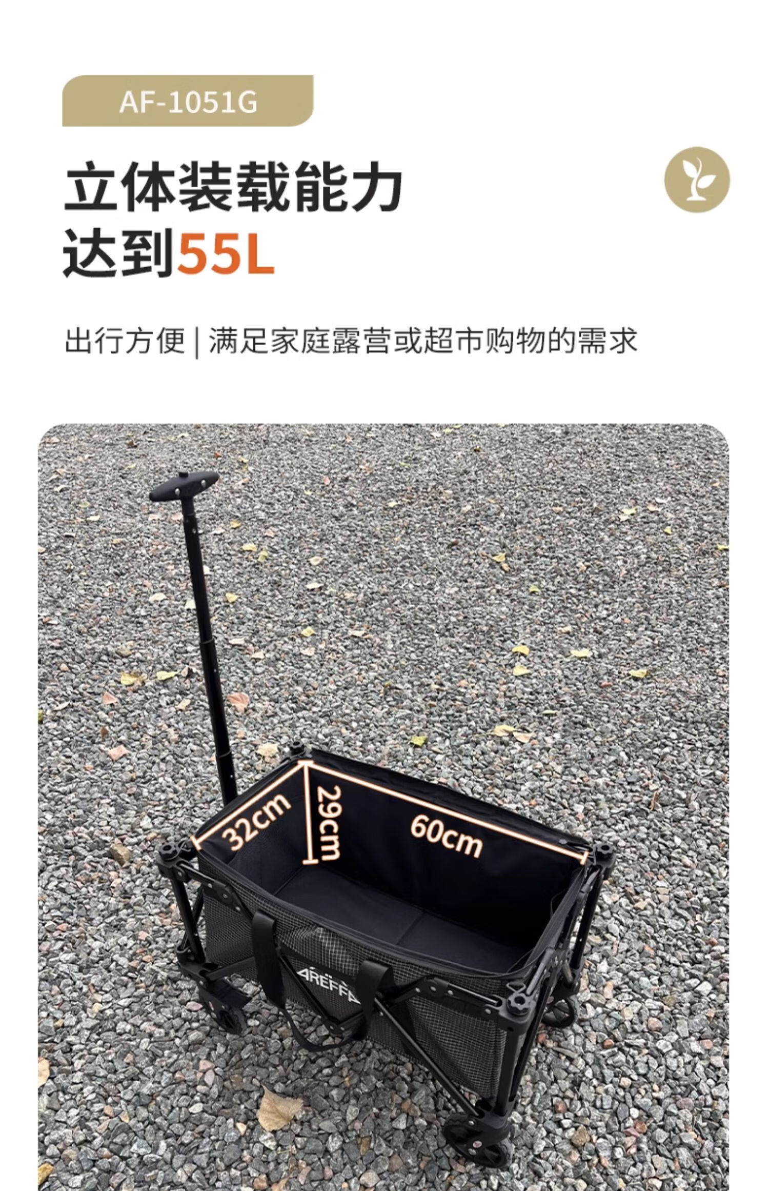 AREFFA露营车铝合金轻量化可折叠承重户外旅行野餐大容量收纳营地手拖车 橄榄绿 150L 有刹车