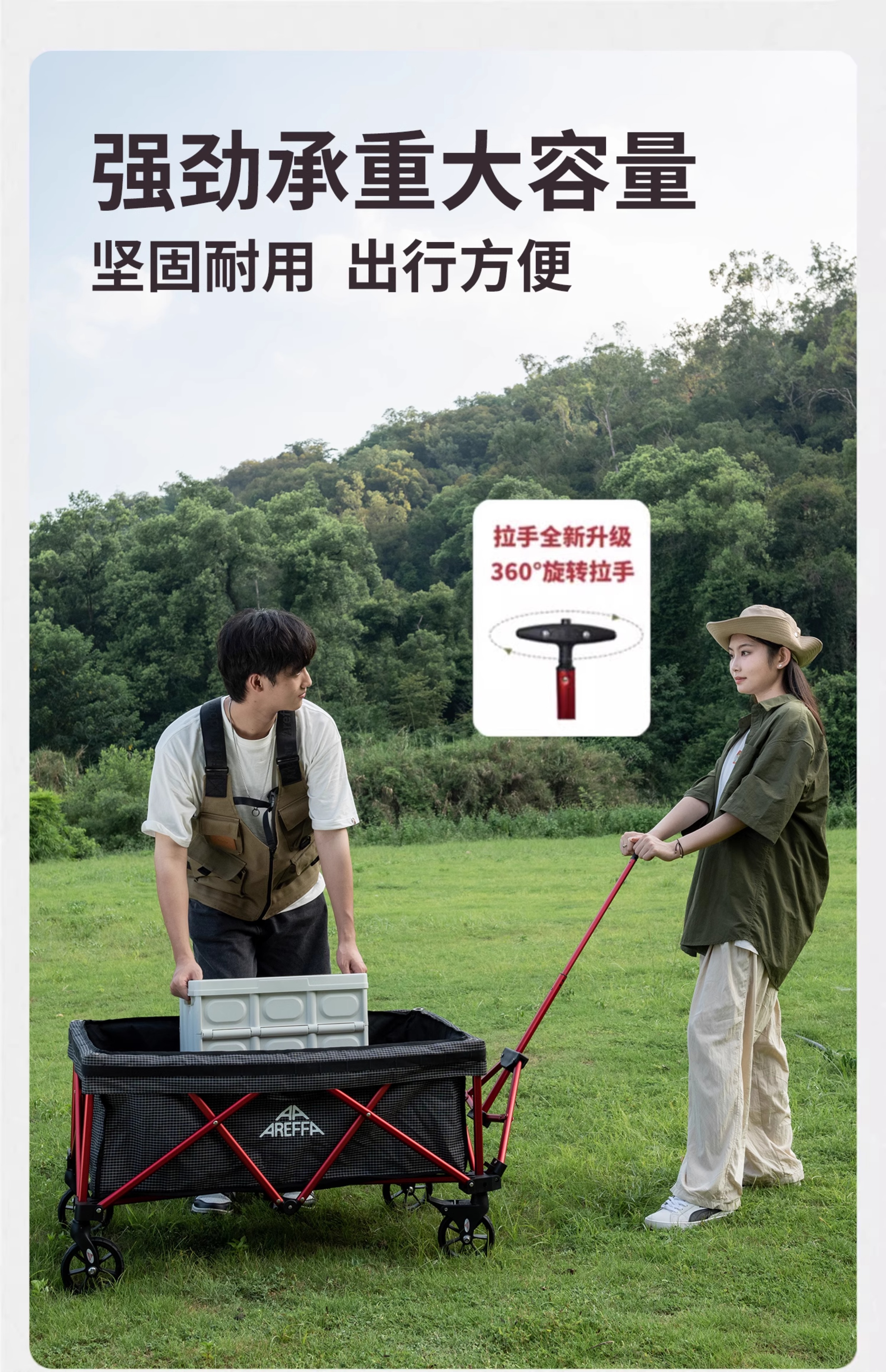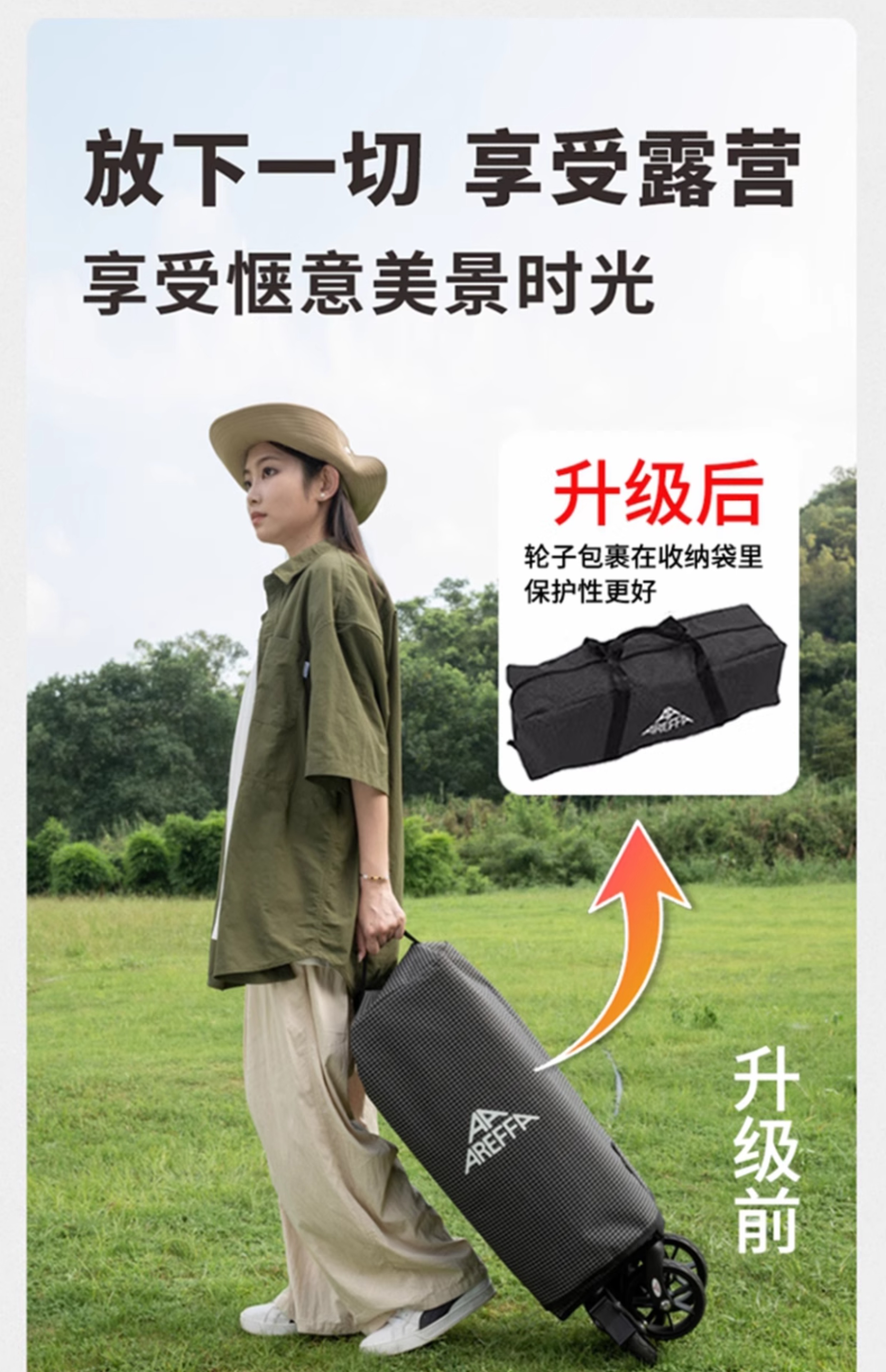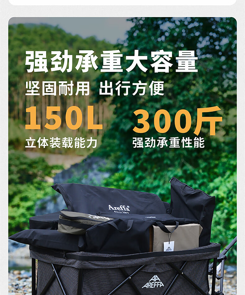 AREFFA户外露营车折叠推车野餐营地车大容量旅行野营装备四向手拉车拖车 150L【轻量化-橄榄绿露营车,终身质保】