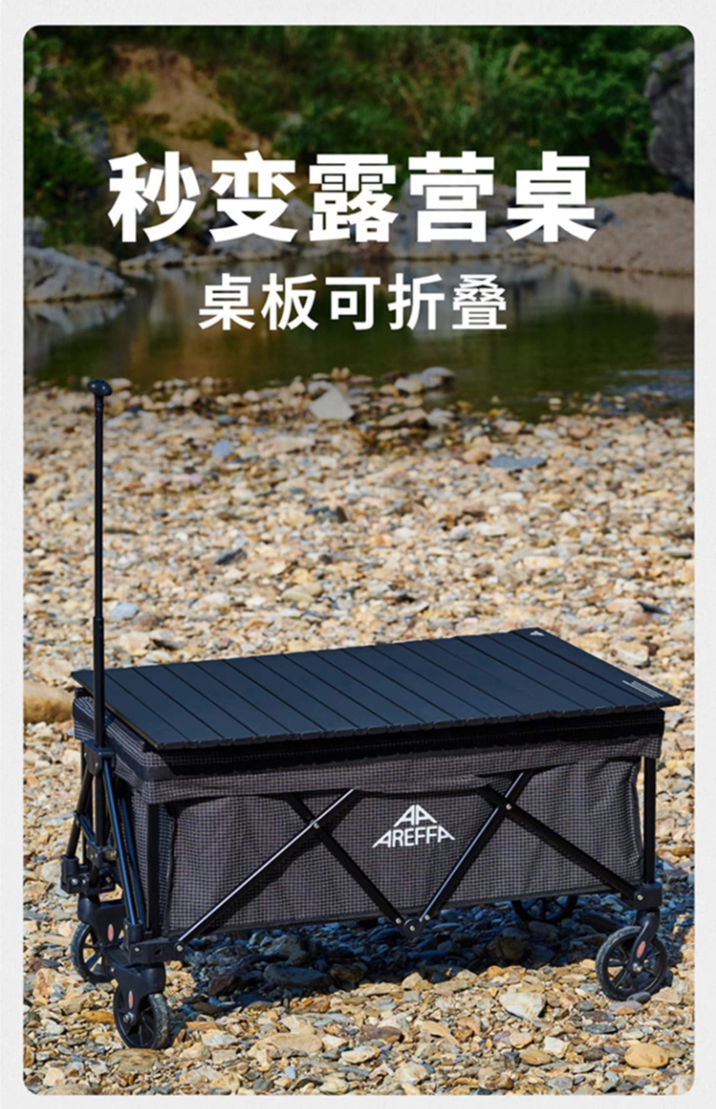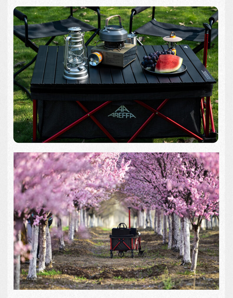 AREFFA户外露营车折叠推车野餐营地车大容量旅行野营装备四向手拉车拖车 150L 有刹车 岩石灰露营车
