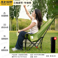 不止荒野户外折叠椅露营椅月亮椅钓鱼椅沙滩椅碳钢支架可折叠轻量化家用椅 绿色【三档调节+300斤承重】