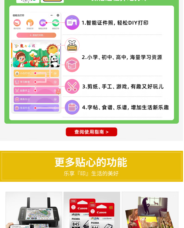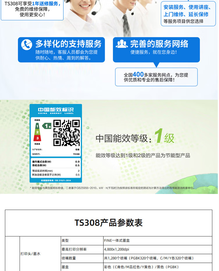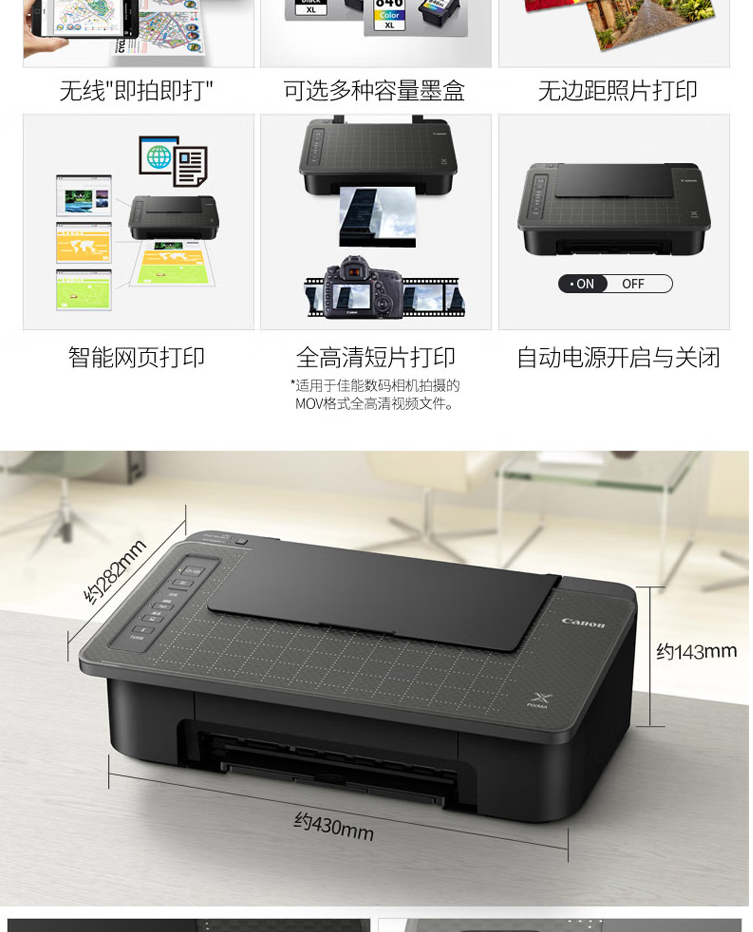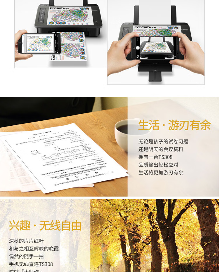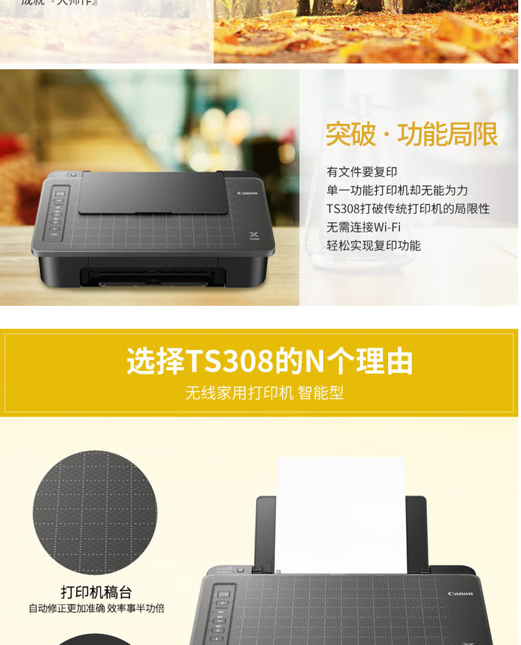佳能家用打印机TS308手机图片文档学生作业无线打印 微信远程打印 TS308(手机无线/微信远程) 套餐一(主机+黑色加墨+墨水2瓶)