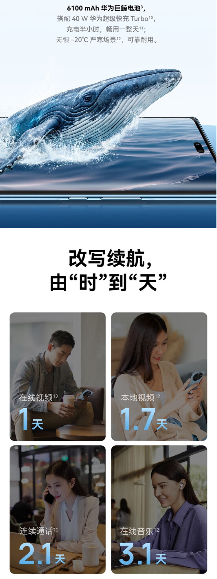 手机(内置电池);华为SuperCharge充电器(Max40W);USBType-C数据线;保护膜(出厂已贴在手机上);快速指南;取卡针;TPU保护壳;云业务权益卡片;最终以实物为准。