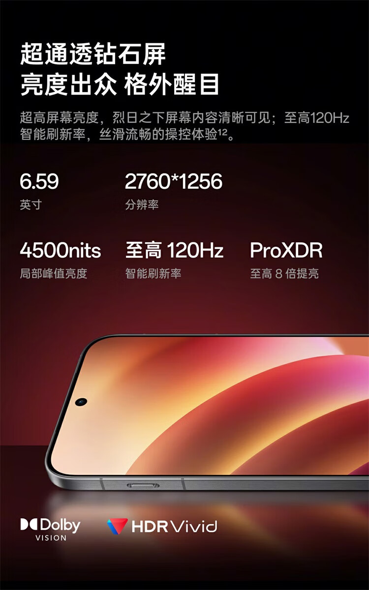 AI大模型,轻薄,高频PWM调光,无线充电,NFC,红外遥控,大底主摄