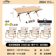 北岳户外折叠桌子便携式蛋卷桌可折叠野餐桌摆摊烧烤桌椅露营用品套装 克米特椅*4+木纹大桌+包