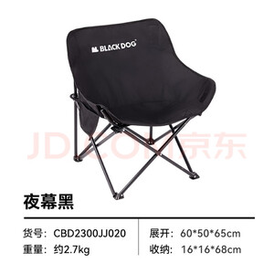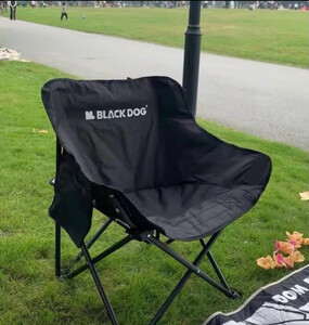 black dog户外折叠椅月亮椅黑狗露营便携靠背钓鱼椅懒人椅休闲旅游旅行椅 高背加厚沙发款夜幕黑