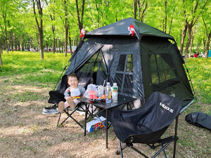 车里长年放着把克米特椅,比较占地方, 想买个月亮椅。黑狗这把浮月折叠椅挺好看的,可惜黑色无货,买了月米色,也还行。钢管承重好,坐着非常稳。回头再买把黑色的
