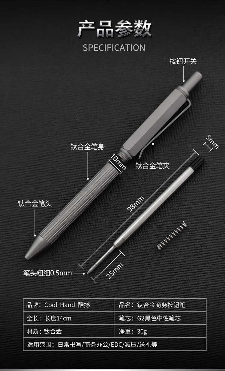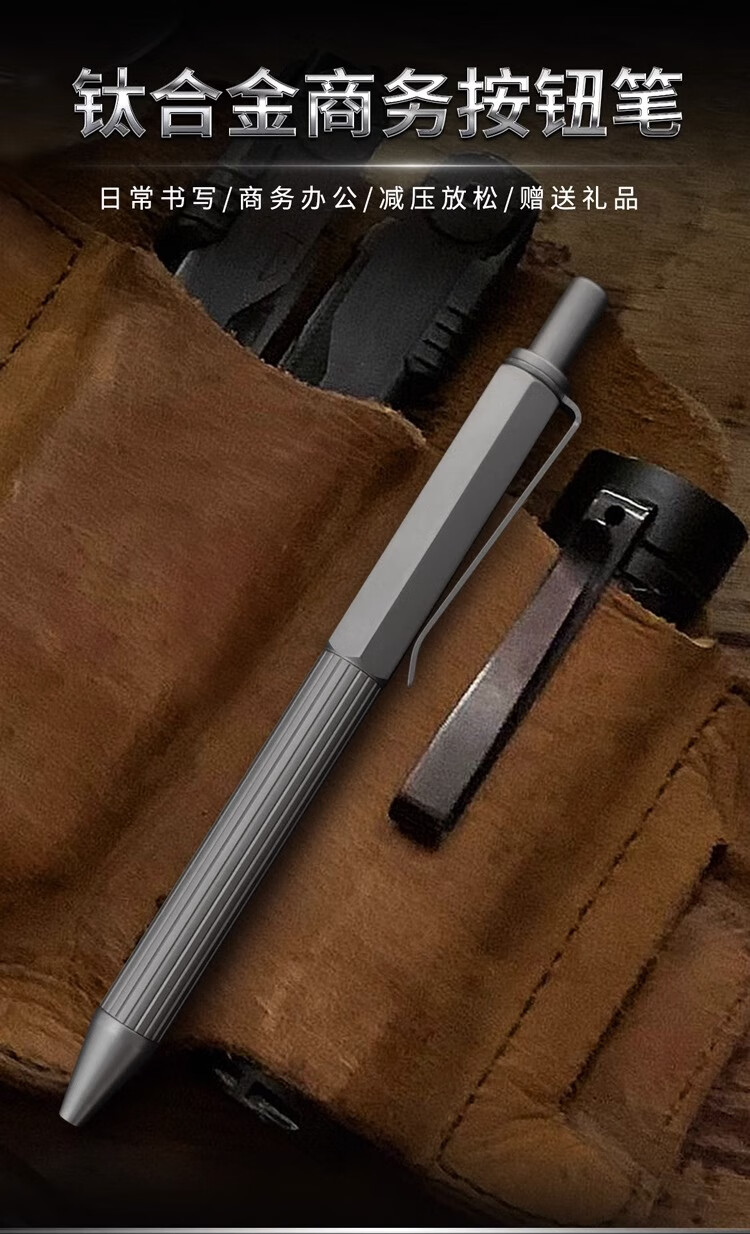 酷撼钛合金战术笔钨钢破窗防身武器合法商务签字笔户外男女防狼金属笔 钛石洗+10支中性笔芯 送3支笔芯