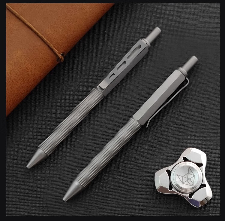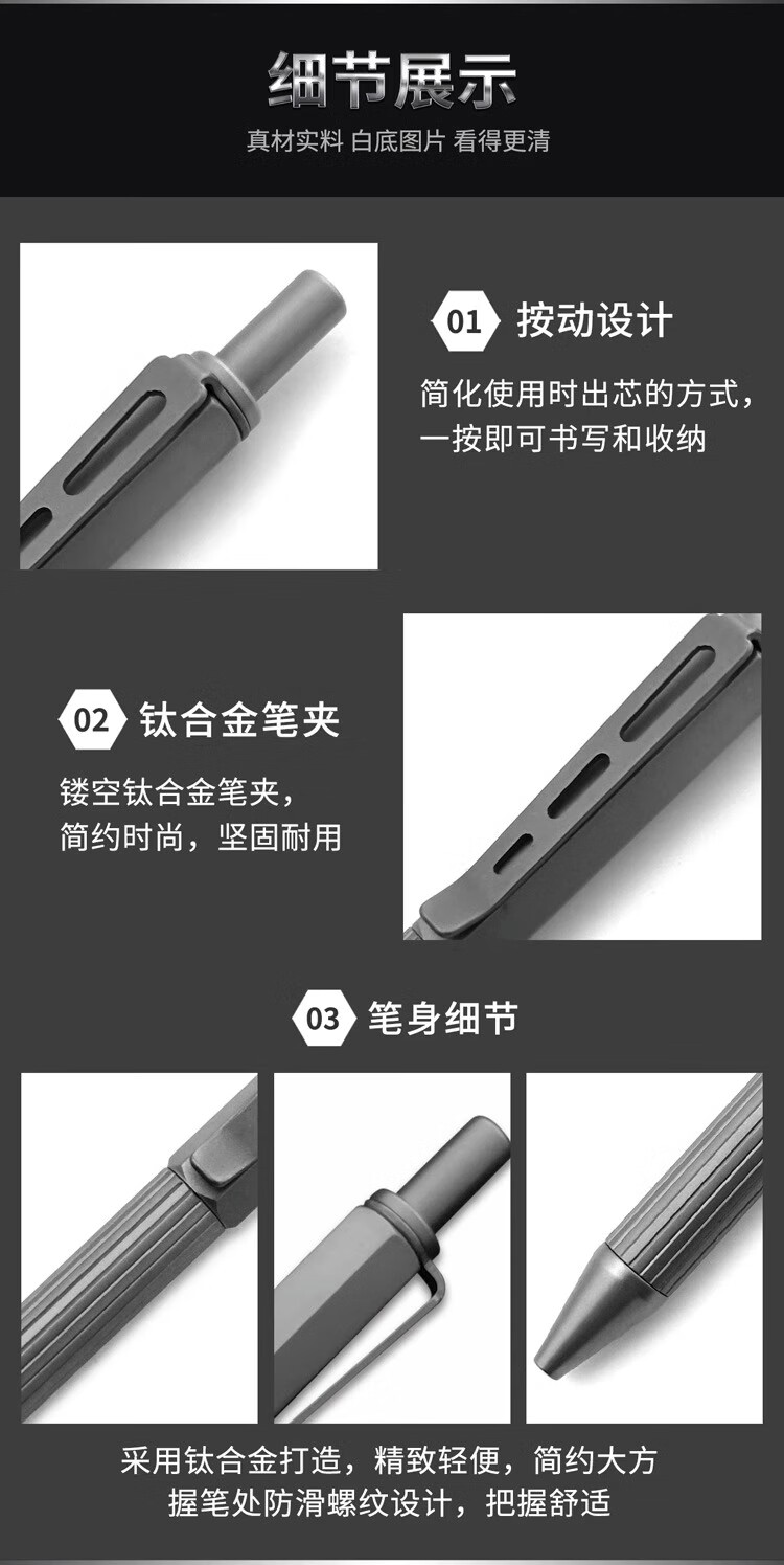 酷撼多功能战术笔钛合金可上飞机按钮商务办公签字笔随身男女生中性笔 钛灰色+10支笔芯 送3支中性笔芯