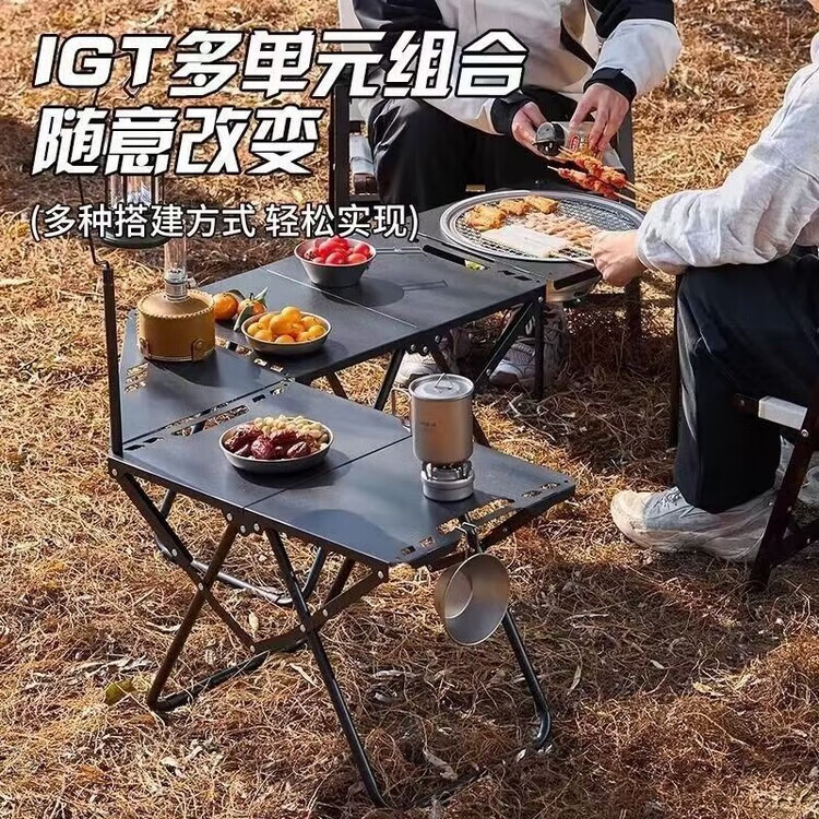 户外折叠战术桌IGT碳钢轻量化露营便携野餐茶桌野炊多功能旅行桌 黑色战术桌(一秒折叠)带收纳袋