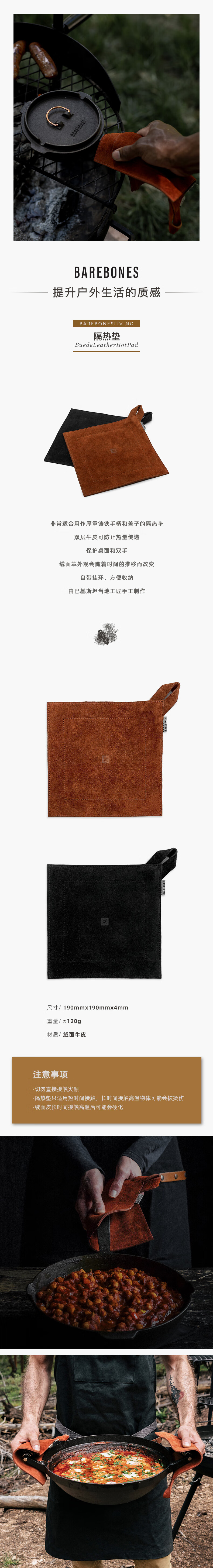 BAREBONES美国北邦户外露营隔热垫防烫巾野营双层绒面牛皮隔热防烫餐桌垫子 黑色