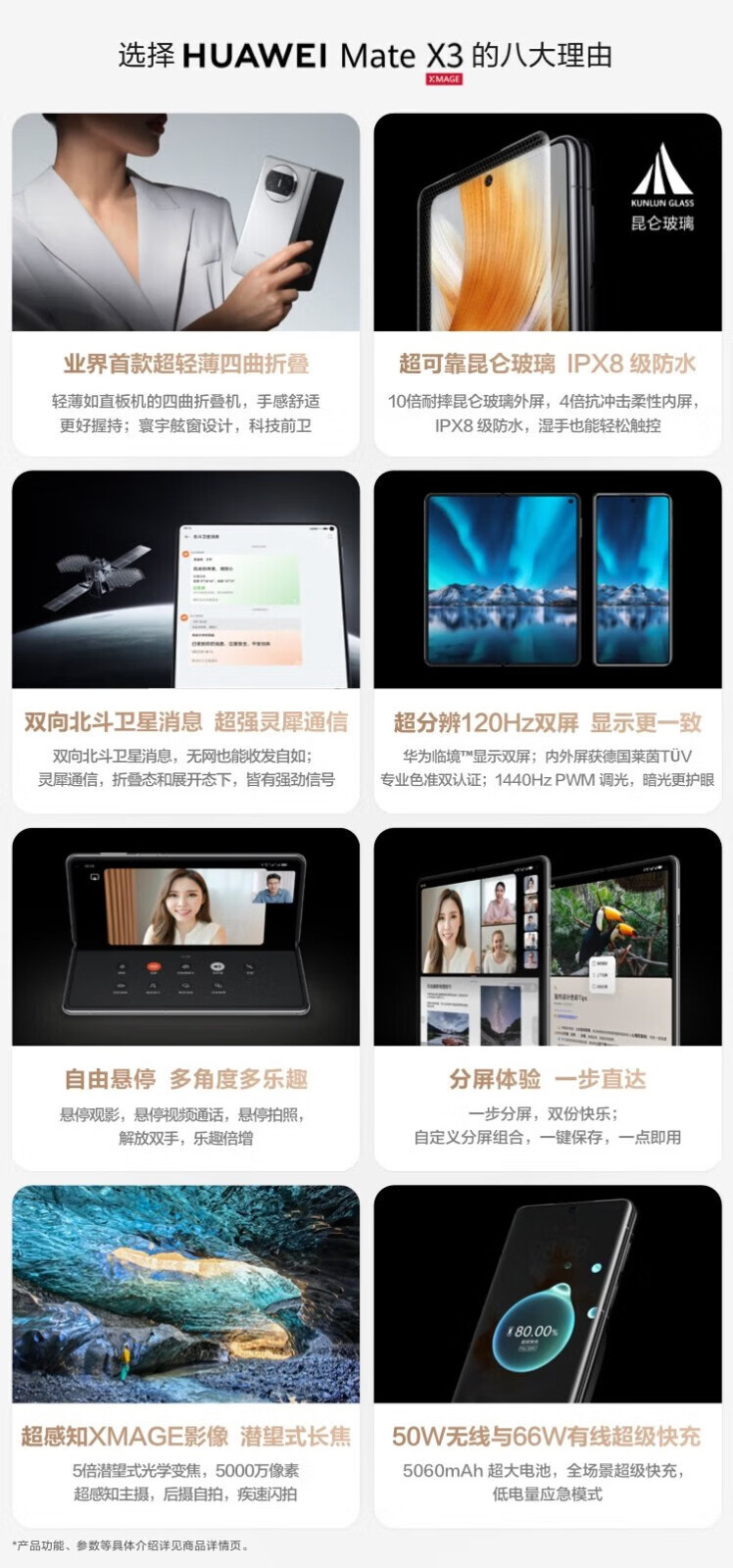 华为展机 Mate X3 轻薄可靠 四曲面柔性屏 昆仑玻璃 鸿蒙折叠屏手机 青山黛 12GB+1TB