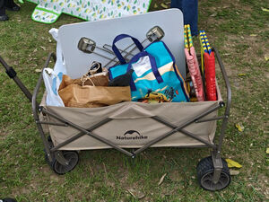 挪客这款露营车的越野粗轮真的太给力了!上次去野营装备塞得满满当当,至少百来斤,拉起来居然一点都不费劲。粗轮子在草地、沙石地上稳稳滚过,什么坑洼路面都没在怕的。 收纳也超方便,一按一折就收起来了。不管是公园野餐还是户外露营,有它真的省力太多,绝对是户外必备神器,物超所值!