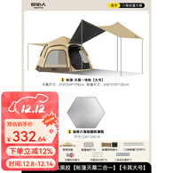 原始人(The Primitive)露营帐篷户外便携式折叠野营天幕二合一便携防雨过夜加厚装备全套 钛黑胶【帐篷天幕大号】+防潮垫