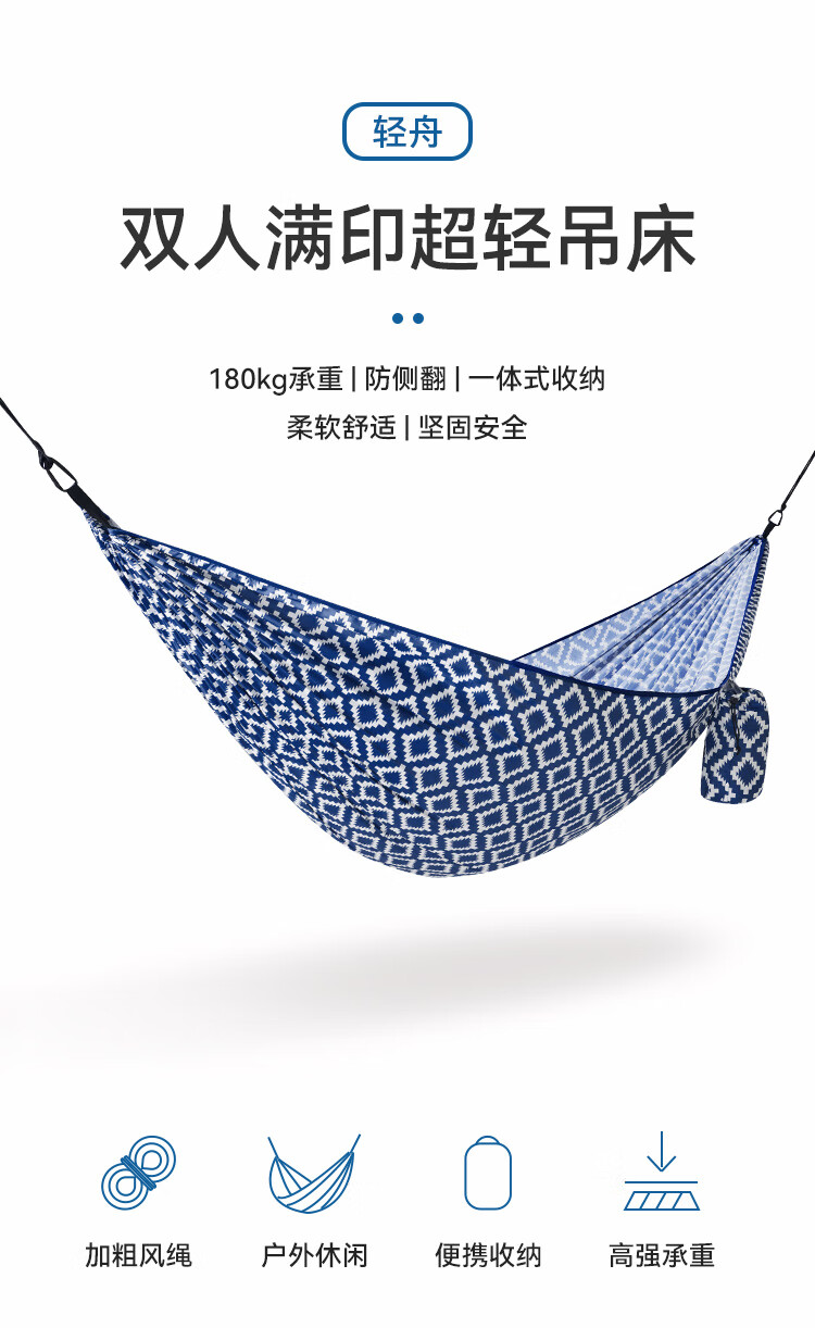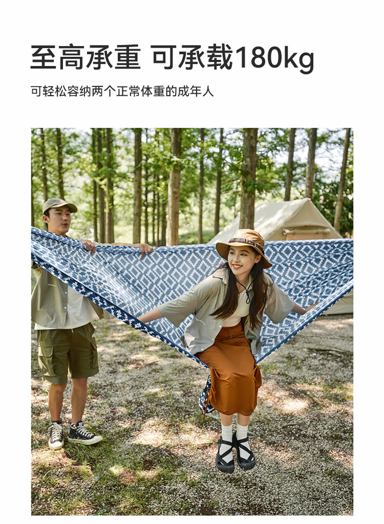 这款希伯和吊床颜值非常高,布料也很结实收纳方便,也方便携带,双人的感觉三个人都可以,面积够大不容易侧翻,长度也够长活动购买价格实惠,值得购买!