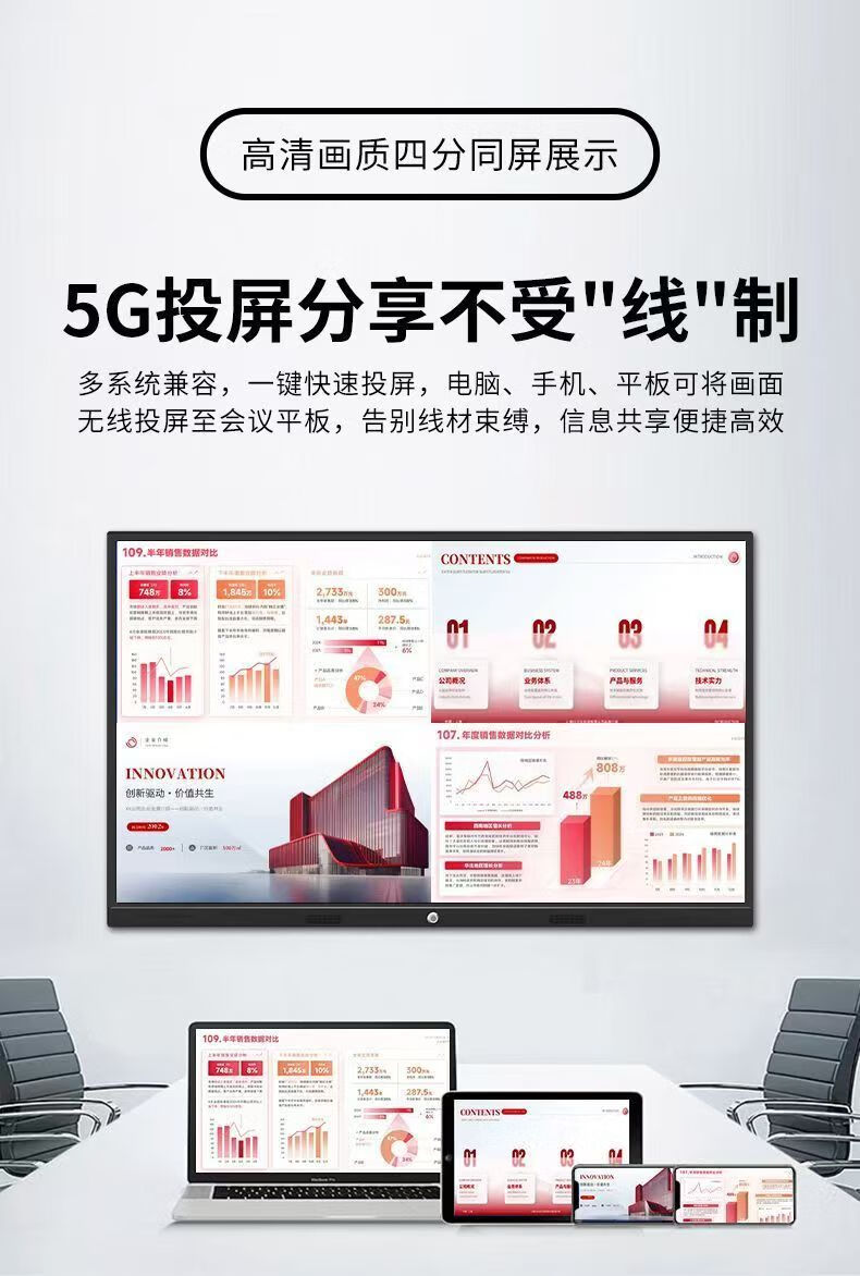 小米4k会议触摸平板一体机65 75 85 100 110寸多媒体电子白板教学 100寸双系统i7/8+512G防爆屏